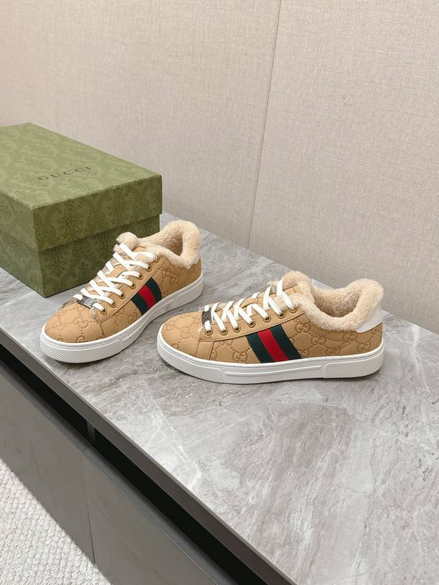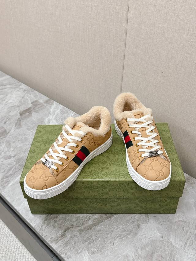 FFF Gucci古驰最新Ace系列 情侣款 休闲 运动鞋出毛里了 DDD 原版购入开发 做货 古驰自问世以来,Ace系列运动鞋延续品牌叙事,匠心成就主打单品。全新系列呈现特色低帮设计,搭配别致细节,焕新诠释运动鞋版型。系带固定处饰以“Ace”金属标牌,加厚构造精致塑就挺括鞋型。Gucci经典红绿条纹织带令整款设计更添魅力。 DDD 面料:原版进口头层牛皮 DDD 内里:原版定制羊毛里 DDD 底厚:3Cm DDD Size:女35-40男39-44 女41 男45 定制 不退换 DDD