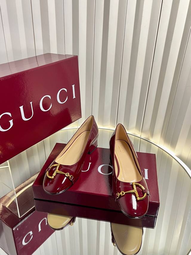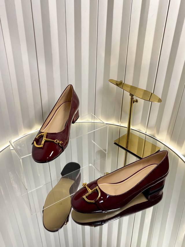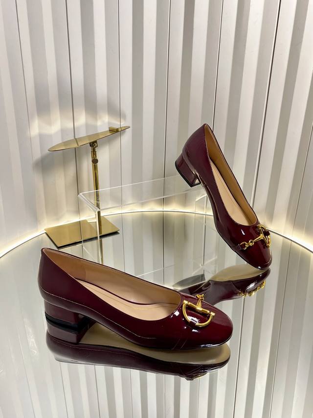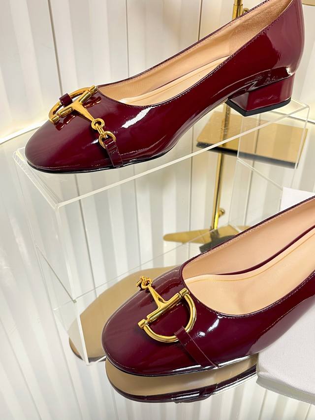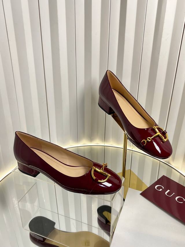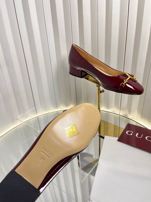 25Ss早秋新款Gucci古驰大D半马衔扣玛丽珍鞋漆皮芭蕾舞鞋低跟单鞋...
