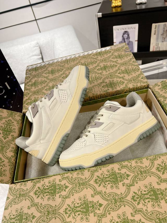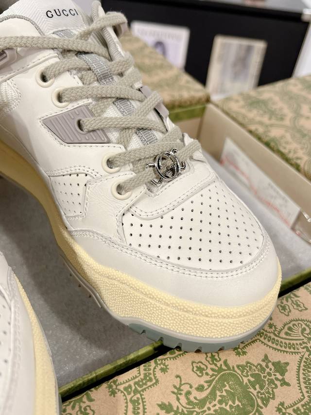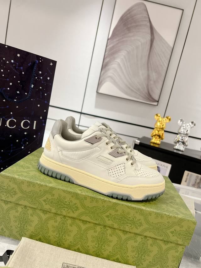Gucci新款 复古做旧效果运动鞋 小白鞋 板鞋 23Ss最新爆款 专柜购买原版一比一打造 所有细节 材料 全部跟你在专柜买到的都一样 独家原版材质 鞋面头层牛皮 4Cm 原版双色厚底 码数:35-45 45定做不退换