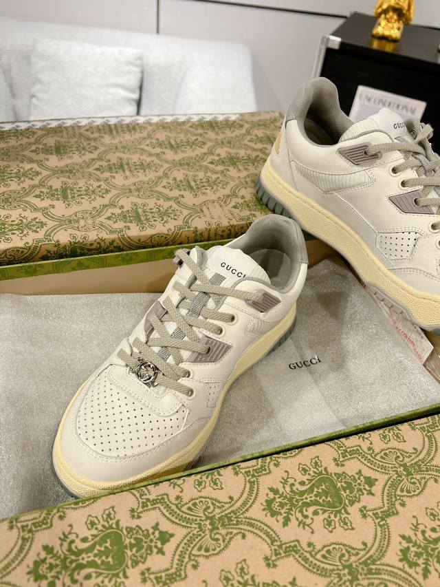 Gucci新款 复古做旧效果运动鞋 小白鞋 板鞋 23Ss最新爆款 专柜购买原版一比一打造 所有细节 材料 全部跟你在专柜买到的都一样 独家原版材质 鞋面头层牛