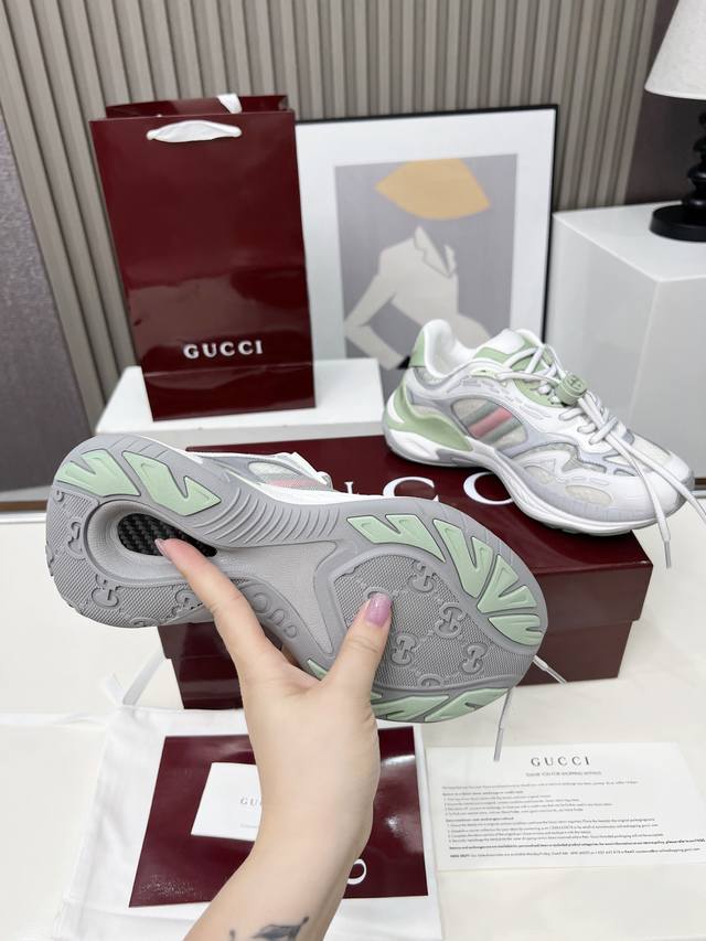 Gucci系列 2.0運動鞋重金打造煥新演繹品牌標誌性條紋織帶元素當復古基因撞上未來感設計這雙古馳新鞋直接把潮流閾值拉滿 DDD 配色卡龍撞色+經典條紋,Gg反光滾邊,視覺衝擊拿捏,出街自帶高光濾鏡 DDD 結構多層異材質拼接,網紗透氣、皮革定型,大底Eva發泡及Tpu組合時髦與實用雙在線 DDD 細節做雙G中底+標誌性雙G鎖扣鞋帶,復古Dna瘋狂躁動,每一步都踩在潮流審美上 DDD 配碼:35-40 DDD