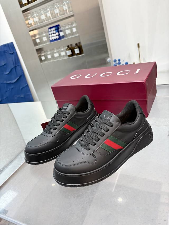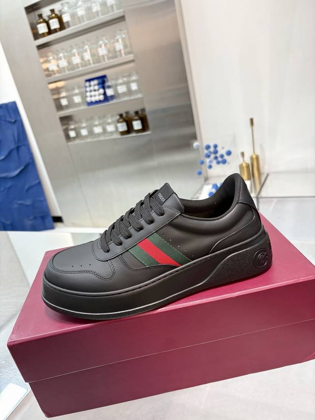 / Gucci 专柜最新情侣款饼干鞋 代购级别 Gucci 最新Ip轻质厚底小白鞋上脚秒内增高4Cm!! 简约 好搭且复古韵味十足~鞋舌最新防伪布标。且带电子芯片防