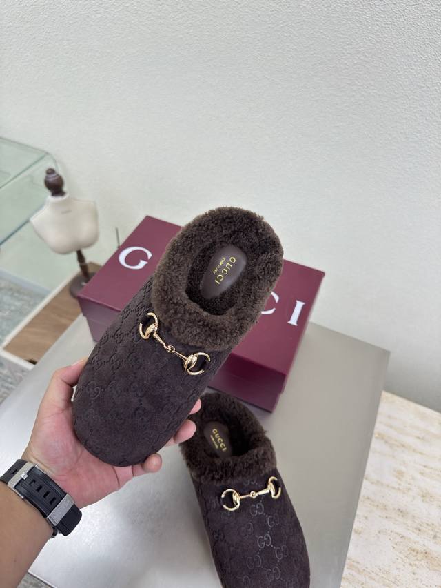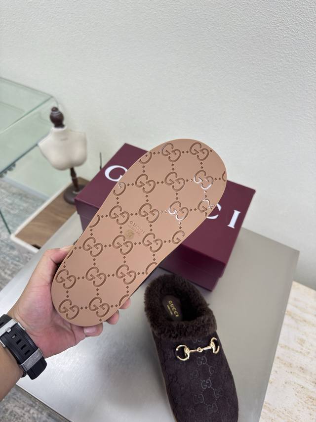 Gucci 厚底拖鞋 双G马鞍扣羊毛拖鞋 DDD Gucci DDD 双G Logo 羊羔毛内里 DDD 经典马鞍扣 DDD 咖啡色 压花压印Logo DDD 时尚的品牌Logo持加,具有超辨高识度各品大争牌恐先推后出超系跟高列Gucci不也落伍 Guccl巴黎时装秀场款 DDD 此系列演绎全新时尚魅力延续超高跟设计,深得海外知名博主青睐千万粉丝博主倾情演绎,畅销海内外国内已经断货,顶级版本糖果色配色,每个颜色都是绝美知知,共13个颜色供选 DDD 鞋面:高丝光牛反绒皮 压印双G Logo DDD 里内: