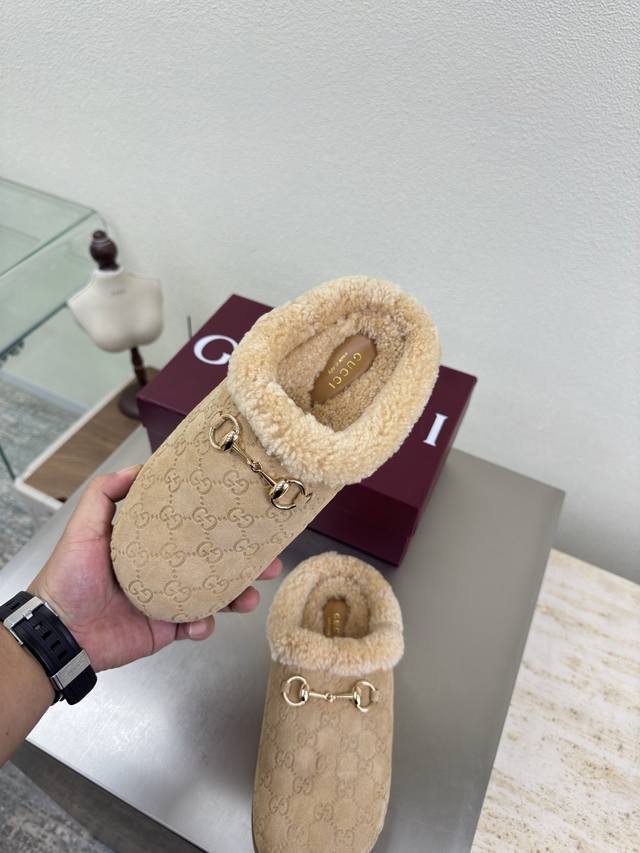 Gucci 厚底拖鞋 双G马鞍扣羊毛拖鞋 DDD Gucci DDD 双G Logo 羊羔毛内里 DDD 经典马鞍扣 DDD 杏色 压花压印Logo DDD 时尚的品牌Logo持加,具有超辨高识度各品大争牌恐先推后出超系跟高列Gucci不也落伍 Guccl巴黎时装秀场款 DDD 此系列演绎全新时尚魅力延续超高跟设计,深得海外知名博主青睐千万粉丝博主倾情演绎,畅销海内外国内已经断货,顶级版本糖果色配色,每个颜色都是绝美知知,共13个颜色供选 DDD 鞋面:高丝光牛反绒皮 压印双G Logo DDD 里内:进