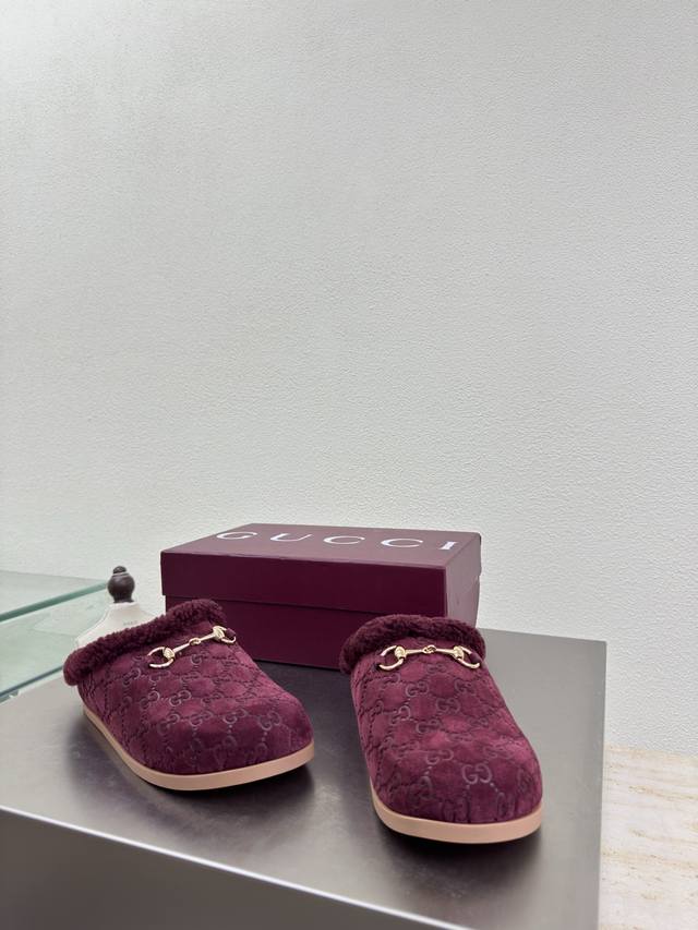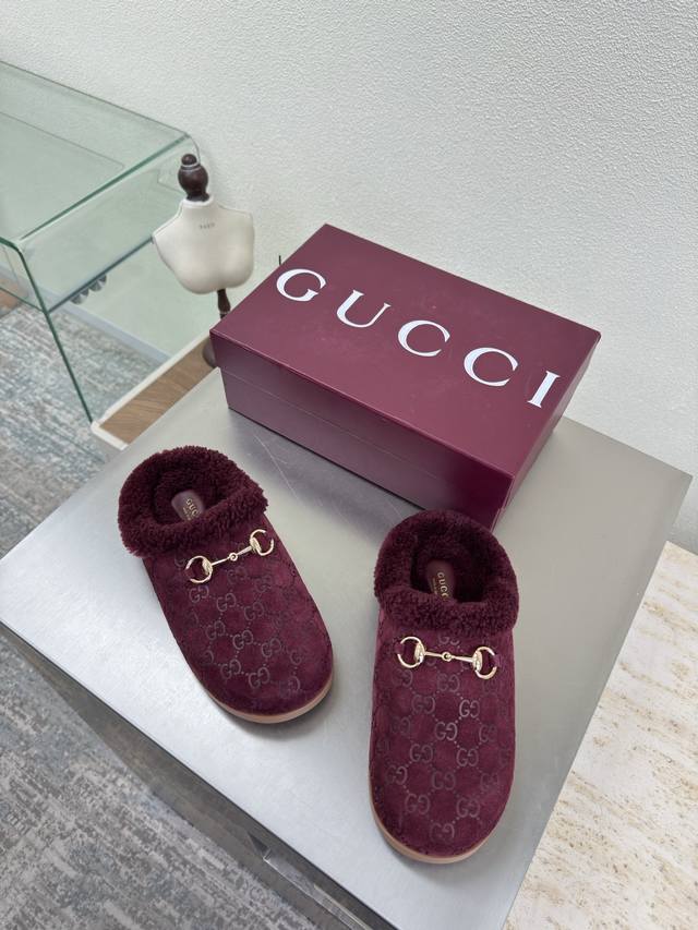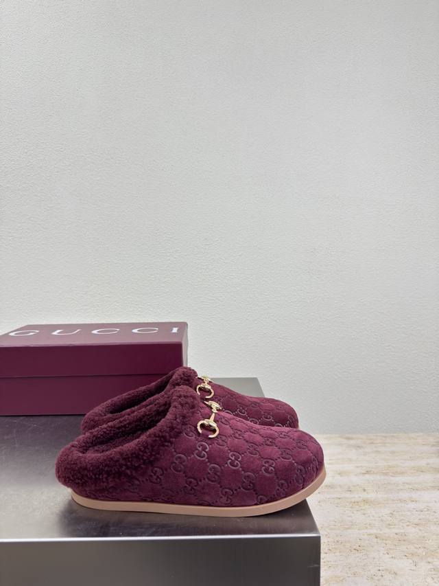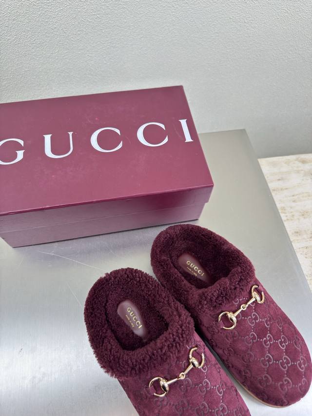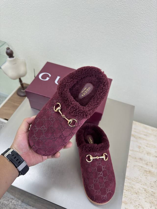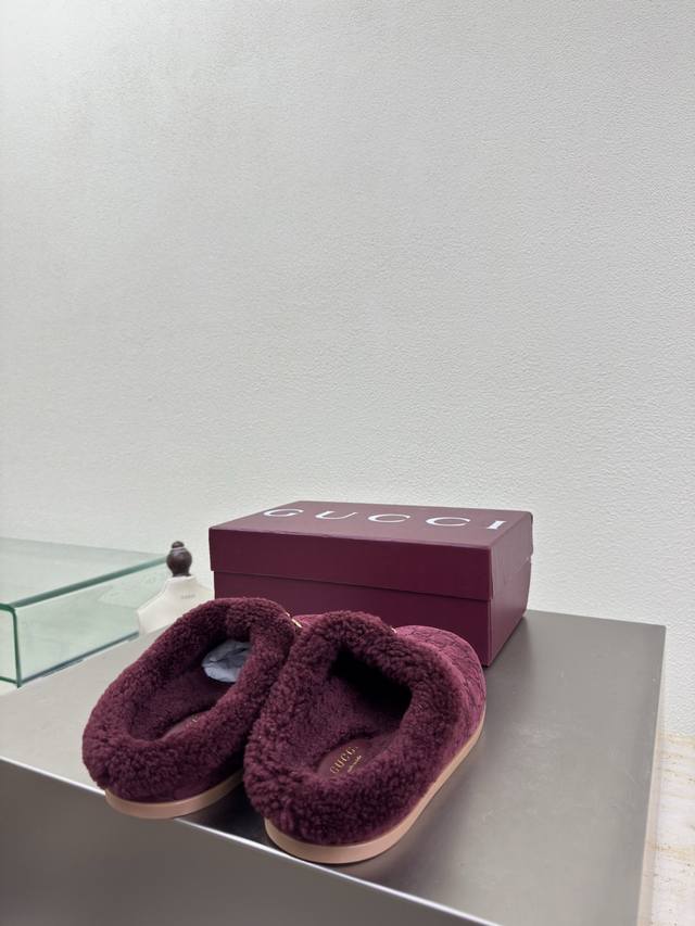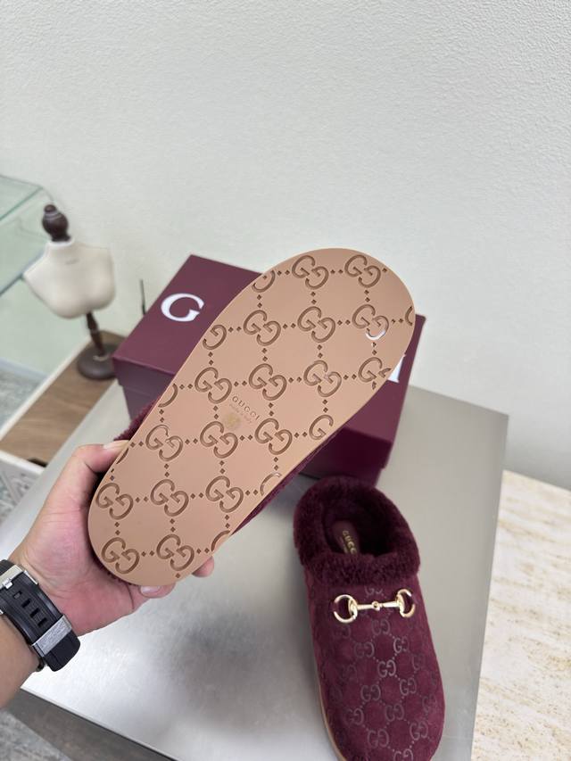 Gucci 厚底拖鞋 双G马鞍扣羊毛拖鞋 DDD Gucci DDD 双G Logo 羊羔毛内里 DDD 经典马鞍扣 DDD 酒红色 压花压印Logo DDD 时尚的品牌Logo持加,具有超辨高识度各品大争牌恐先推后出超系跟高列Gucci不也落伍 Guccl巴黎时装秀场款 DDD 此系列演绎全新时尚魅力延续超高跟设计,深得海外知名博主青睐千万粉丝博主倾情演绎,畅销海内外国内已经断货,顶级版本糖果色配色,每个颜色都是绝美知知,共13个颜色供选 DDD 鞋面:高丝光牛反绒皮 压印双G Logo DDD 里内: