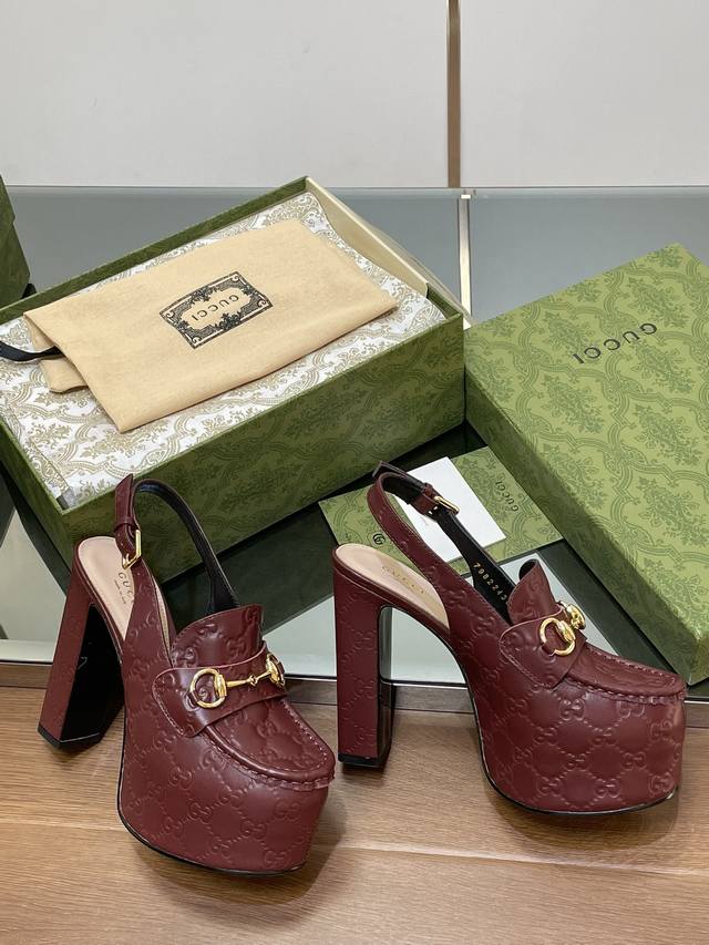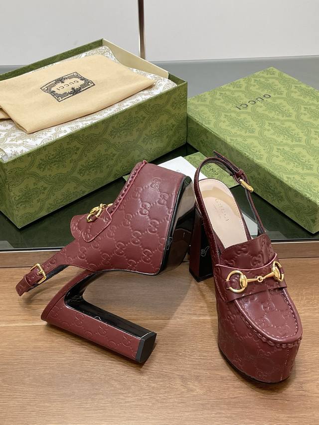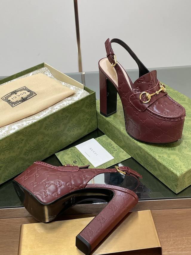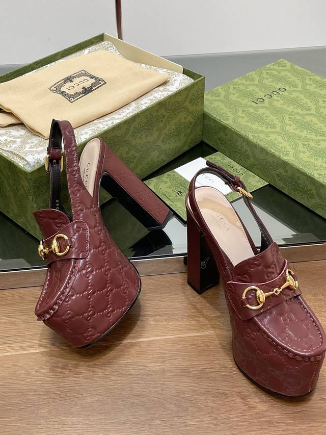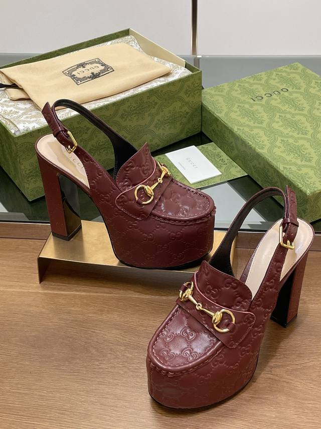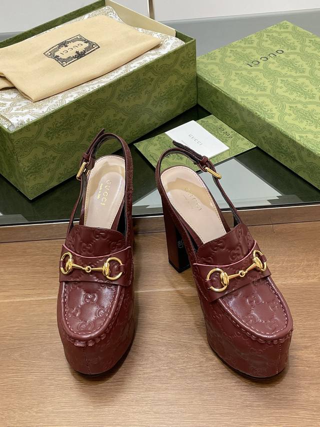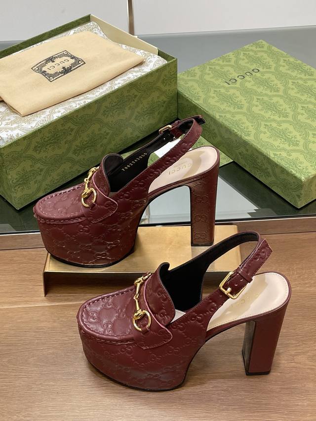 Gucci 古奇秋季新品防水台马鞍扣 马衔扣 厚底后系带乐福鞋 亚光Gg压花牛皮 高跟厚底防水台慕勒鞋,鞋柜必备款 原版套楦 高端品质