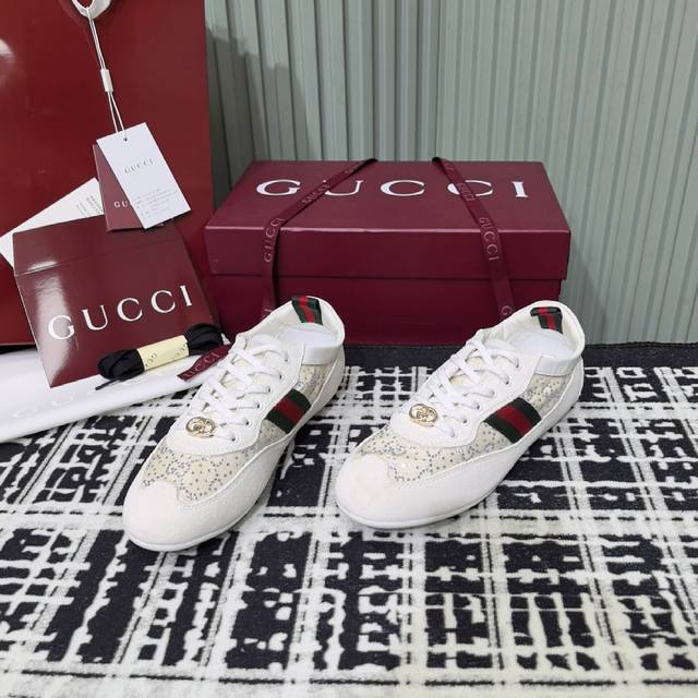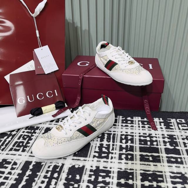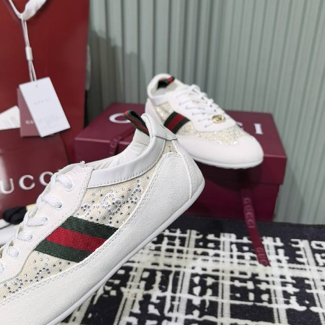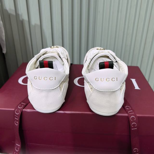 / Gucci 古驰新款德训薄底 运动鞋 轻盈设计焕新诠释运动风尚。利落廓形更添自在本色,行动间彰显精致质感。织带细节宛如一道延绵不绝的饰带贯穿于整个设计,侧边缝线