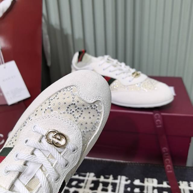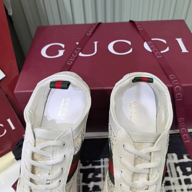 gucci~~最新配色小脏鞋 休闲鞋 运动鞋 zp开发纯原版本 金属双G水晶圆柱形标 Gucci原版纹织带 鞋面擦色牛皮拼接经典双G布面料...