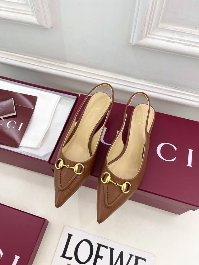 Gucci 古驰 25 2025秋冬新品经典马衔扣尖头后空凉鞋 主打系列终于面世,狠货值得期待!原有的经典 创造新设计 Bs代购级别!高级感十足!国内外博主刷爆的一款,复古又时髦 穿搭简便 上脚美炸了!官网主推,新色持续更新 T 鞋面:原版特定小牛皮 内里: 进口羊皮里 大底:原版进口真皮大底 跟高:4.5Cm 鞋码: 35-39 40.41.可定做 出厂价Pp: