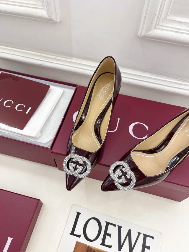 Gucci 古驰 25 G家 主打系列终于面世,狠货值得期待!原有的经典 创造新设计 Bs新款 经典双G水钻尖头高跟鞋 代购级别!高级感十足!国内外博主刷爆的一