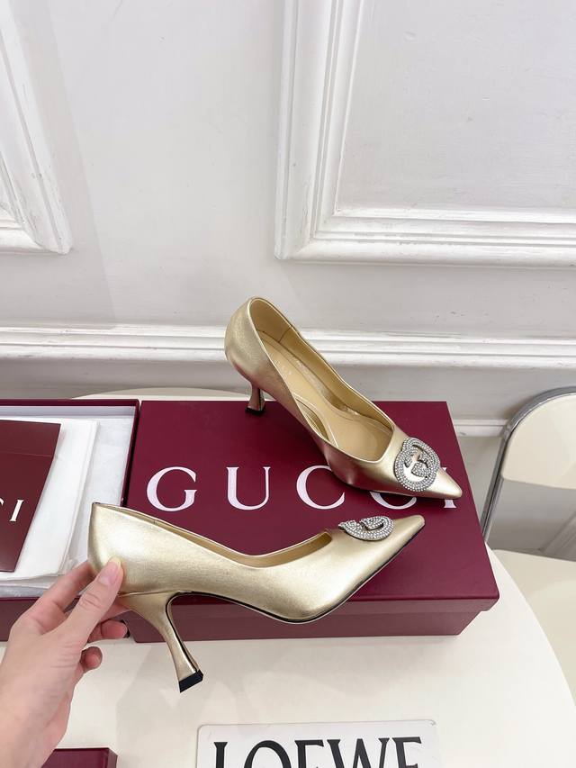 Gucci 古驰 25 G家 主打系列终于面世,狠货值得期待!原有的经典 创造新设计 Bs新款 经典双G水钻尖头高跟鞋 代购级别!高级感十足!国内外博主刷爆的一