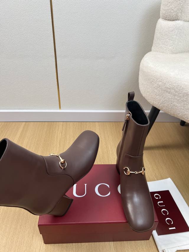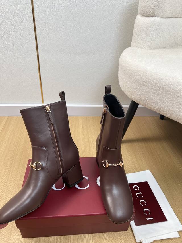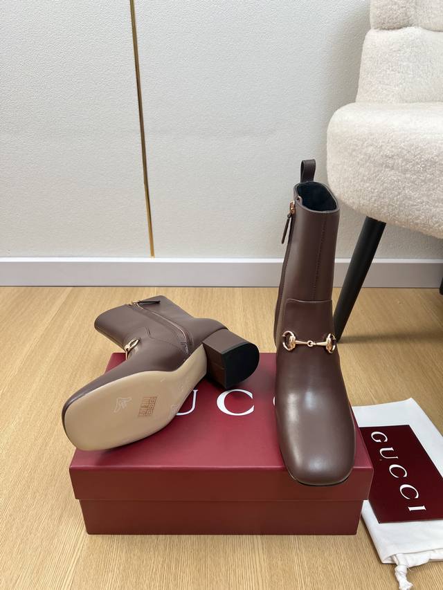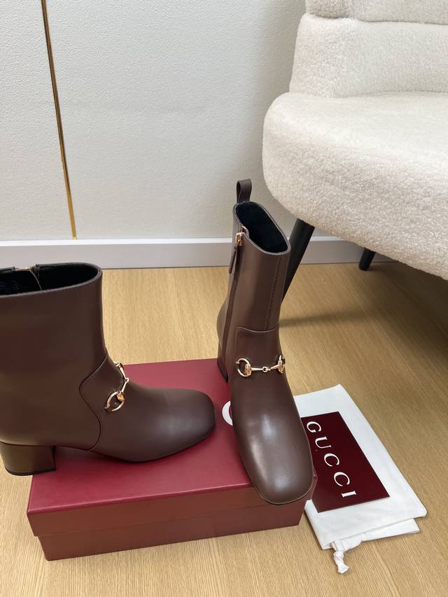 Gucci 古驰 5 DDD G家2025秋冬新品 专柜最新经典马衔扣粗跟短靴系列 DDD 上脚轻松驾驭任何服饰。设计简约、选择多样化的基础款,而非看似简单,实则添加许多繁琐必要的细节。无论是居家还是外出都是非常可爱的穿搭 厚底,鞋头饱满,宽版设计,非常非常舒适,既运动,又可以休闲商务& DDD 鞋面 :原版定制小牛皮 DDD 内里 :羊皮内里 DDD 大底 :意大利进口真皮大底 DDD 跟高 :5.5Cm DDD 码数 :35-42 40.41.42定制不退换 DDD 厂价p : DDD