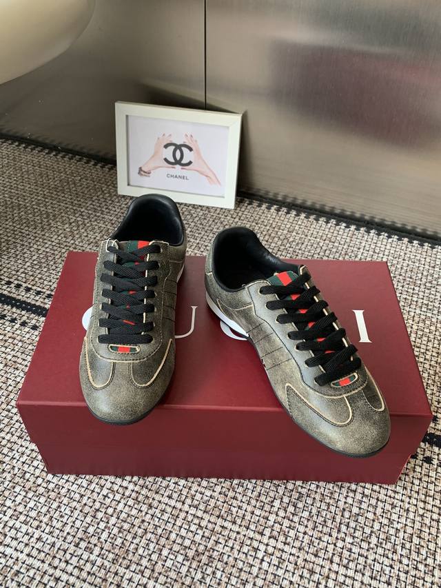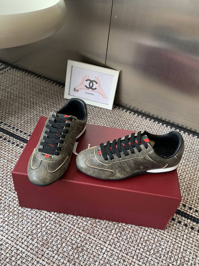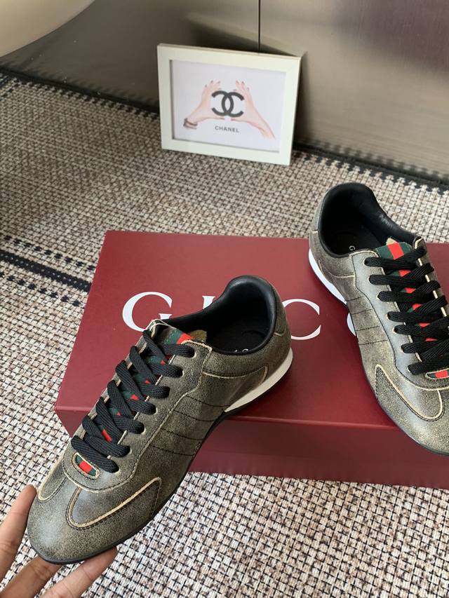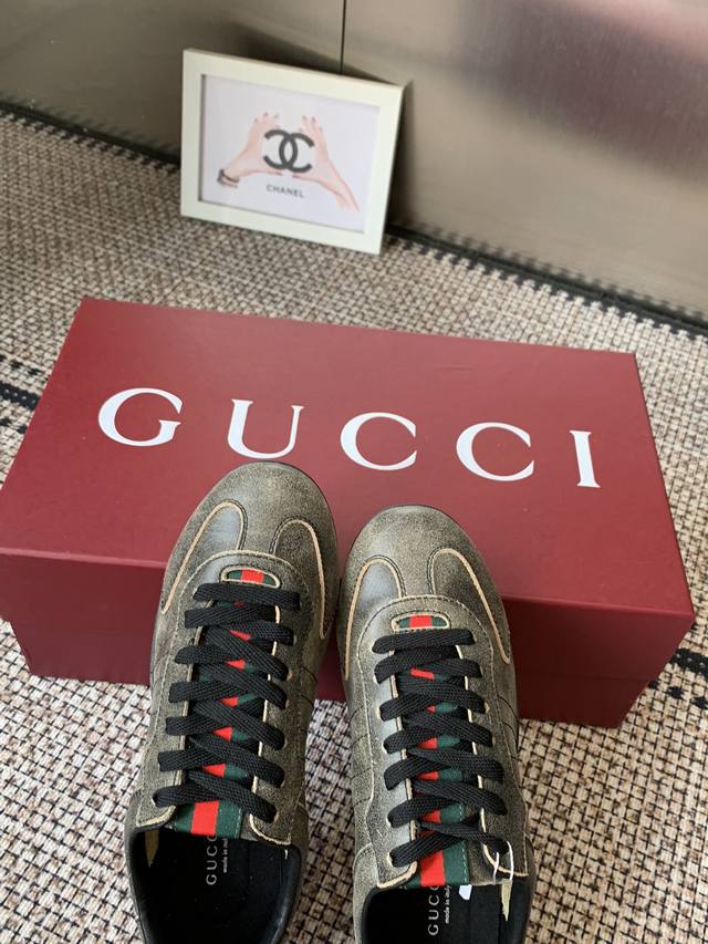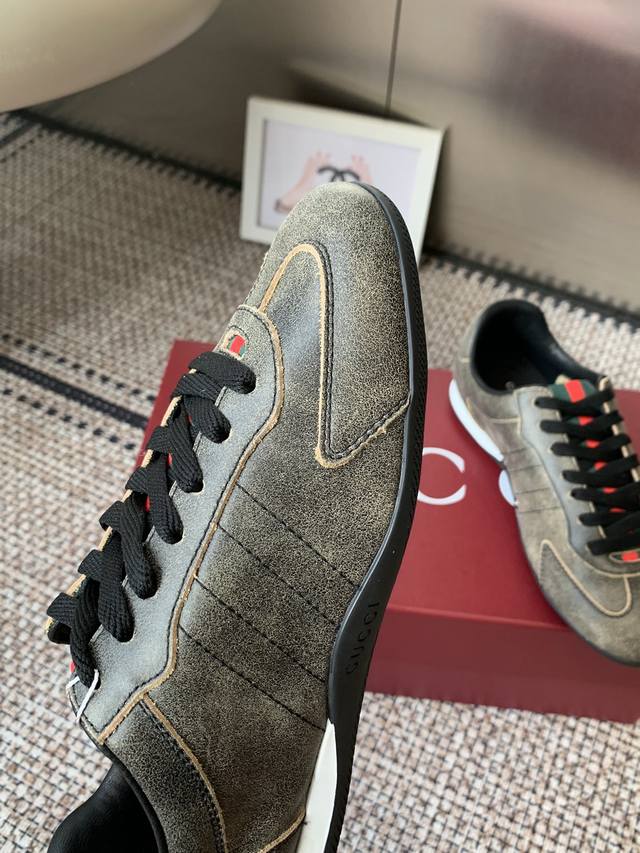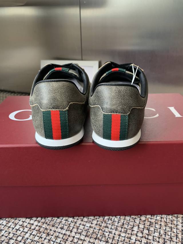 Gucci 古驰 Shift系列 复古 德训鞋 休闲 运动鞋 DDD Gucci Shift系列全新上市 轻盈设计焕新诠释运动风尚 利落廓形更添自在本色 行动间彰显精致质感 织带细节宛如一道延绵不绝的饰带贯穿于整个设计 侧边缝线细节增添点睛之笔 DDD 面料原版定制进口头层牛皮 DDD 内里原版定制柔软羊皮里 DDD 原版开模防滑Tpu材质 DDD 码数:35-45 女款40男款45.定做 DDD