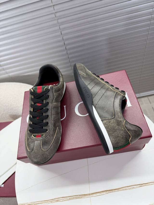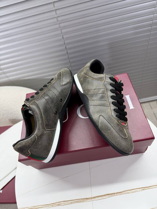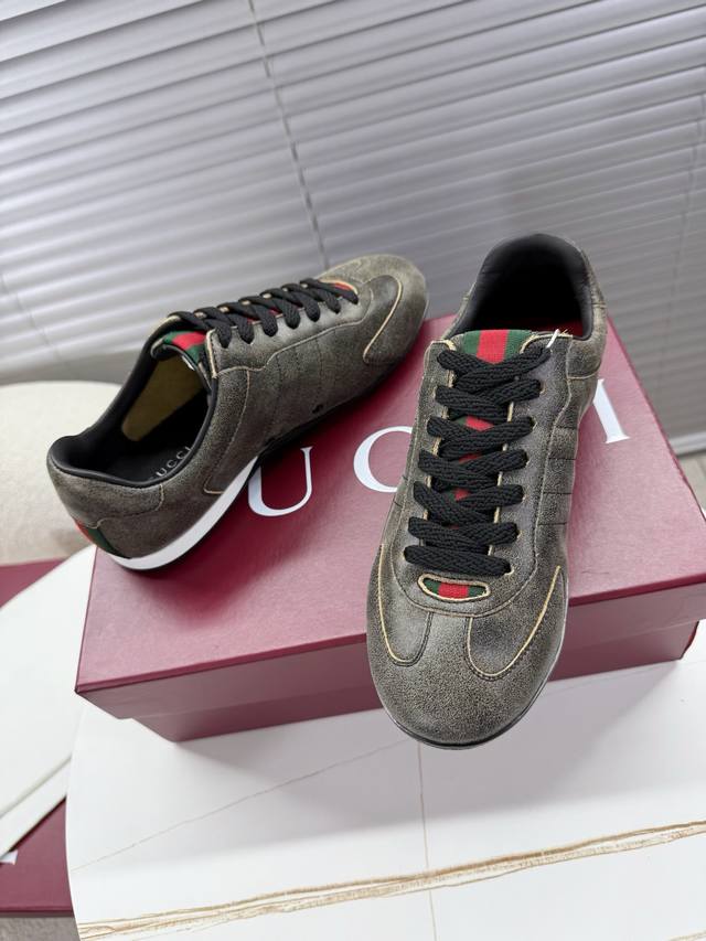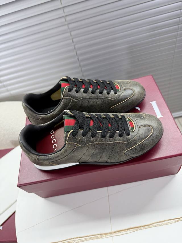 Gucci 情侣款复古德训鞋;运动鞋;薄底鞋 经典复古范 永不褪色的训德鞋,绝对人手入必的德训运动鞋 原版定牛制皮 牛反绒面料,透气网面垫脚,Tpu原版底,鞋舌
