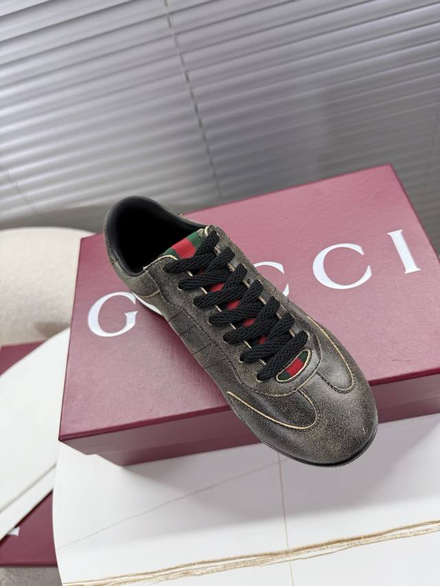 / Gucci 情侣款复古德训鞋;运动鞋;薄底鞋 经典复古范 永不褪色的训德鞋,绝对人手入必的德训运动鞋 原版定牛制皮 牛反绒面料,透气网面垫脚,Tpu原版底,鞋舌