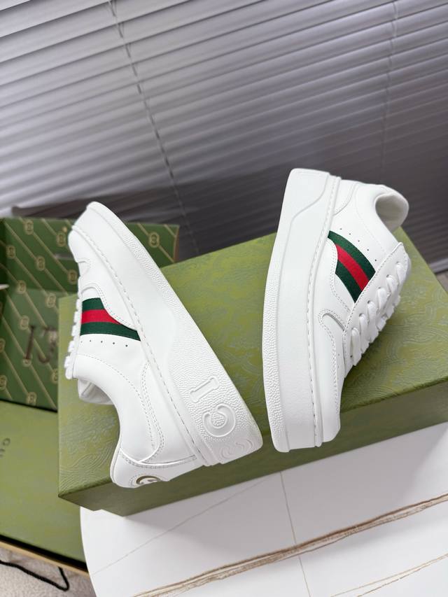 Gucci 情侣款饼干鞋 厚底鞋 小白鞋 运动鞋 平板鞋 走秀款:明星 网红 小红书等必定种草打Call 原版定制牛皮面料 经典老花布,穿孔,压纹工艺 ,原版底