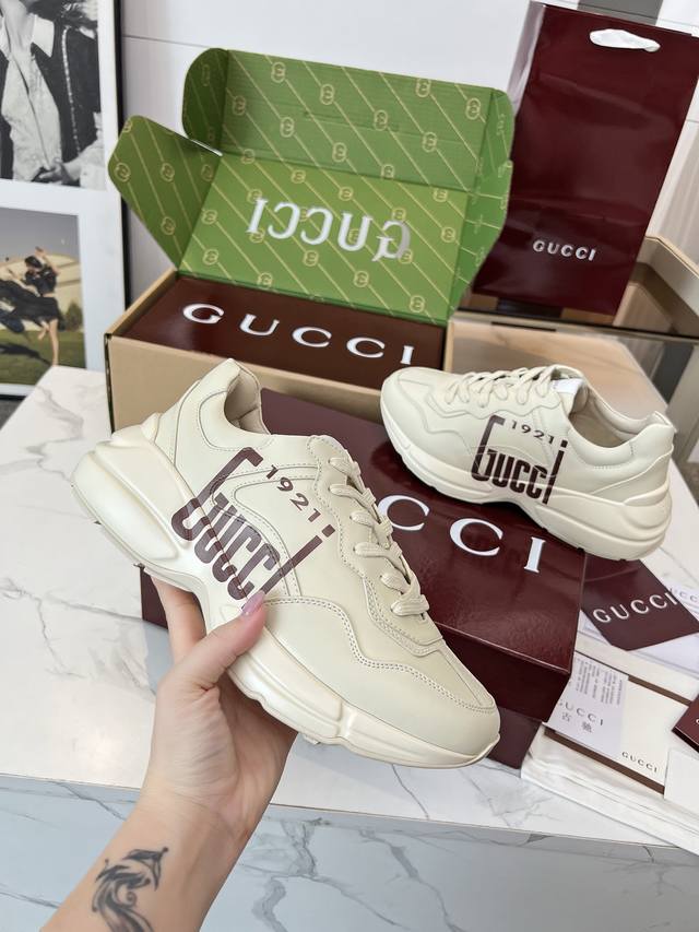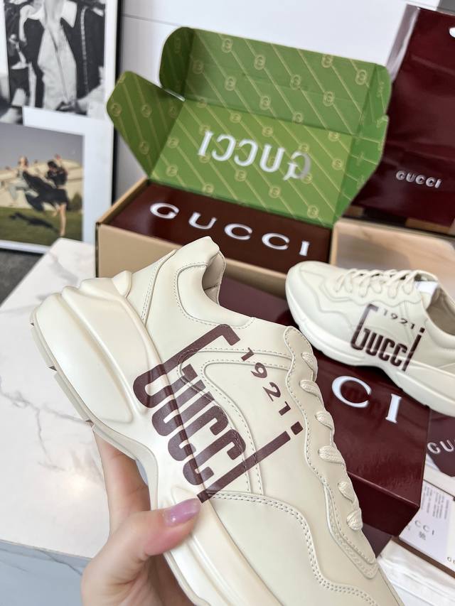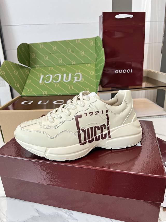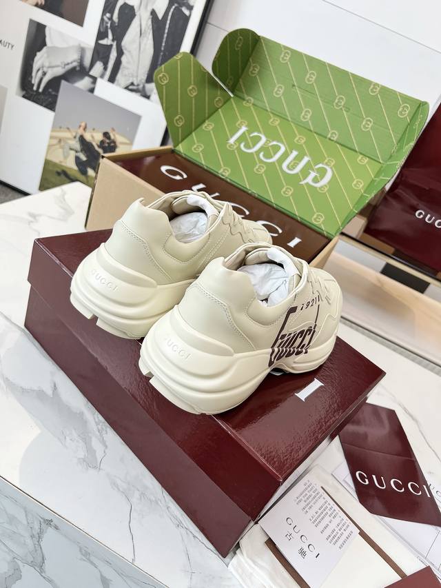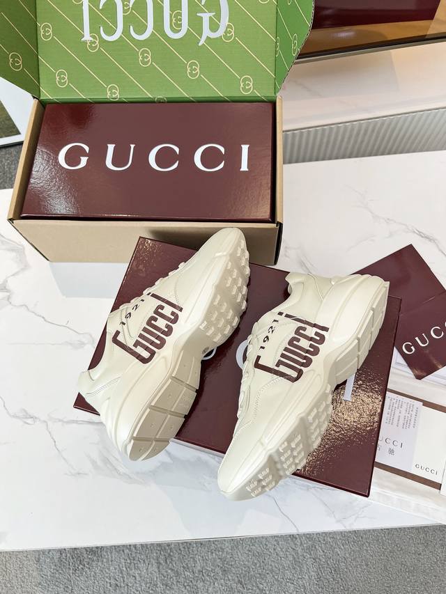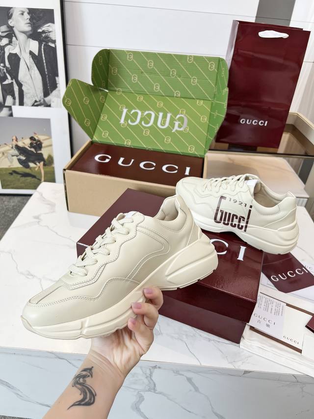 Gucci 老爹鞋,踩出你的奢华宣言 厌倦了千篇一律?渴望在人群中脱颖而出?Gucci 老爹鞋;正是你衣橱里缺失的那件风格利器! 经典重塑,复古回潮:汲取 年代复古灵魂,注入 Gucci 当代美学基因。标志性的厚实廓形、大胆线条与层次感设计,瞬间唤醒你的复古潮流Dna,成为街头绝对的视觉焦点。 双G荣耀,无处不在:无处不在的经典双G标识,或醒目点缀,或低调融入鞋身细节。这不仅是品牌象征,更是你不凡品味与身份的无声宣告。穿上它,每一步都自带光环。 奢华材质,匠心工艺:Gucci 从不妥协于品质。甄顶级皮革、