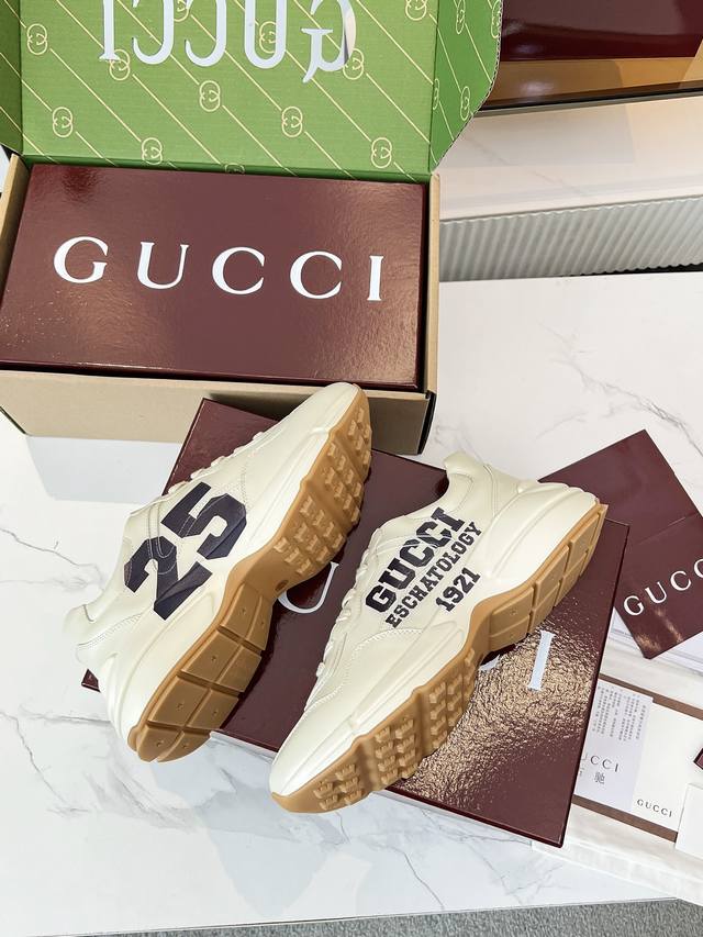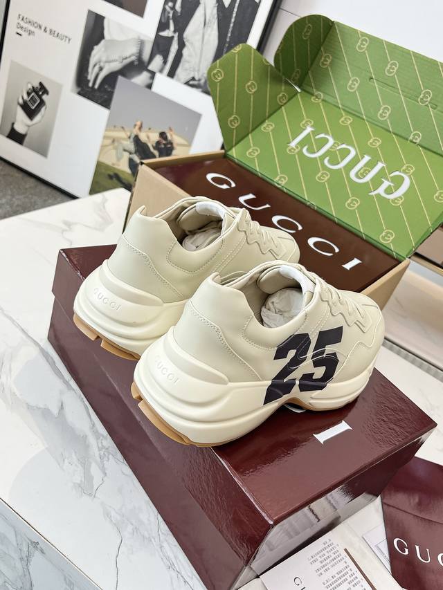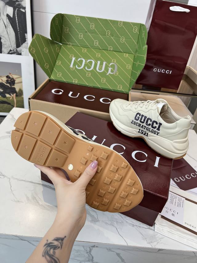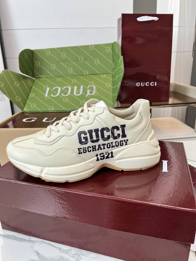 Gucci 老爹鞋,踩出你的奢华宣言 厌倦了千篇一律?渴望在人群中脱颖而出?Gucci 老爹鞋;正是你衣橱里缺失的那件风格利器! 经典重塑,复古回潮:汲取 年代复古灵魂,注入 Gucci 当代美学基因。标志性的厚实廓形、大胆线条与层次感设计,瞬间唤醒你的复古潮流Dna,成为街头绝对的视觉焦点。 双G荣耀,无处不在:无处不在的经典双G标识,或醒目点缀,或低调融入鞋身细节。这不仅是品牌象征,更是你不凡品味与身份的无声宣告。穿上它,每一步都自带光环。 奢华材质,匠心工艺:Gucci 从不妥协于品质。甄顶级皮革、