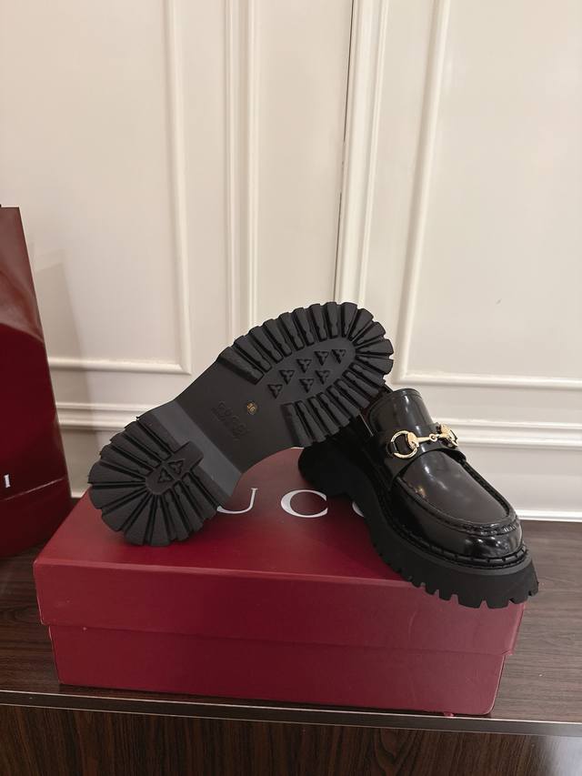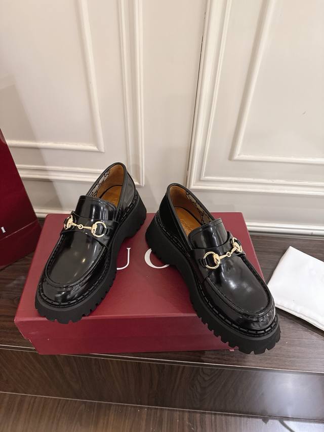 Gucci 饰马衔扣沟纹底乐福鞋 作为品牌对马术本源的致敬之作,马衔扣历经岁月洗礼之后,将厚重历史底蕴和现代时尚流行融合形成一体 牛皮面 底厚 码数:35-42