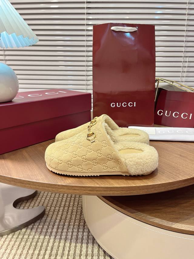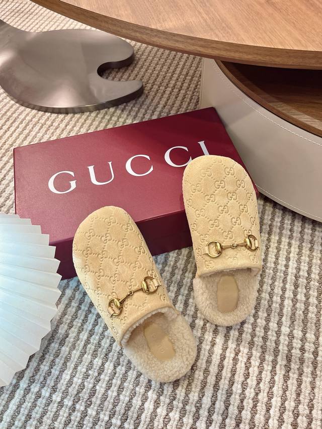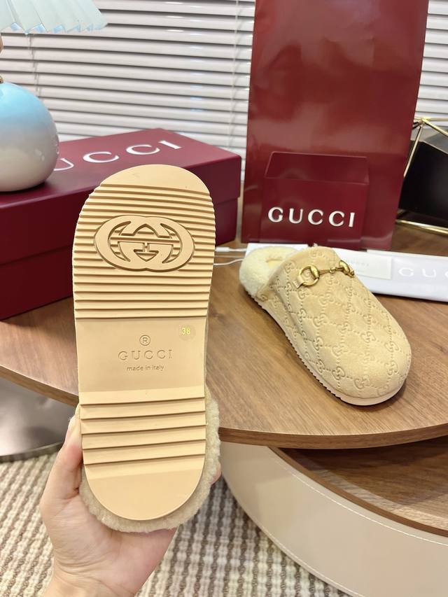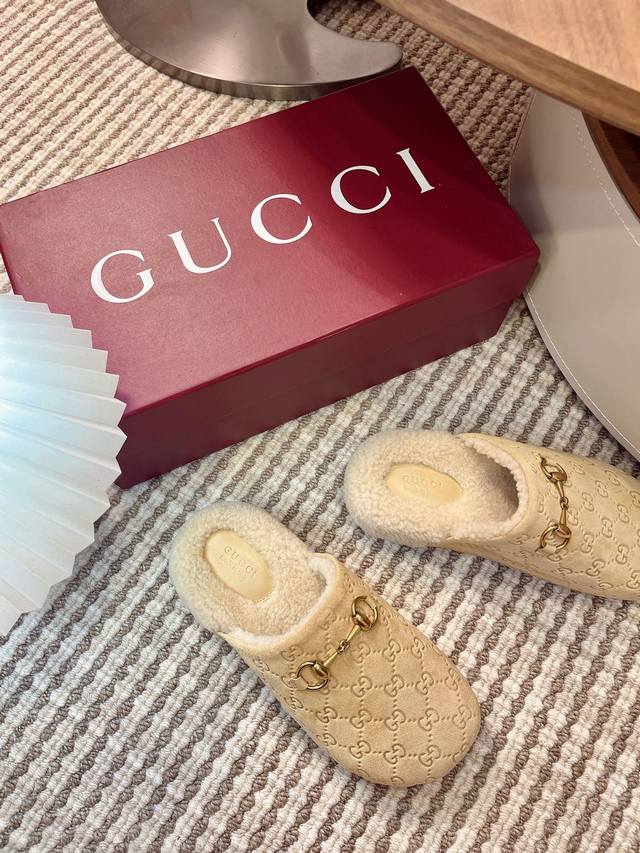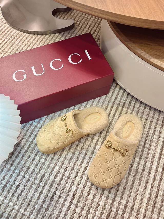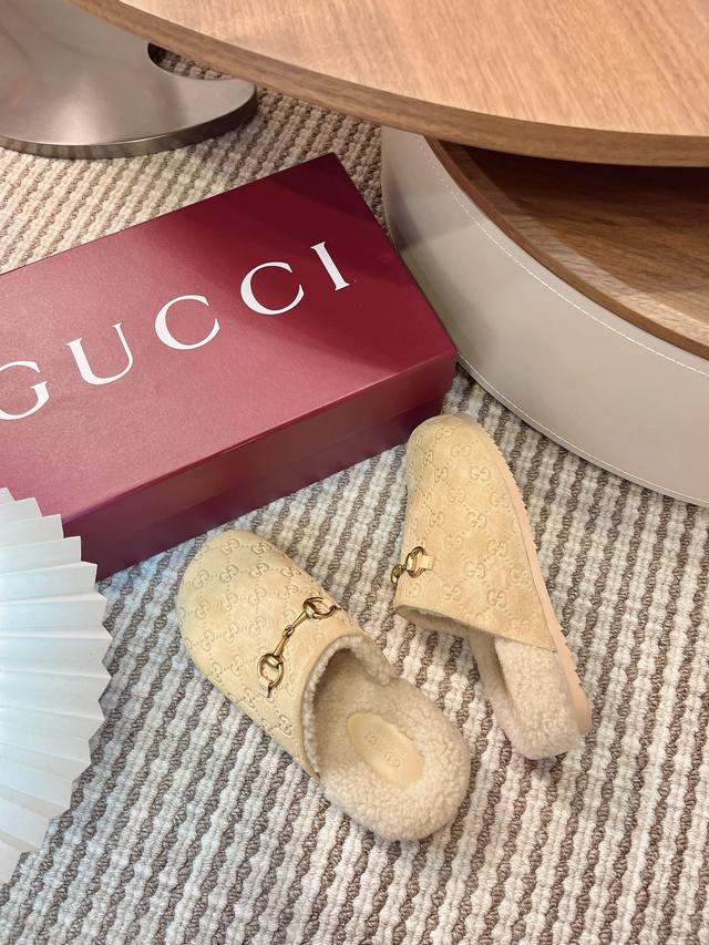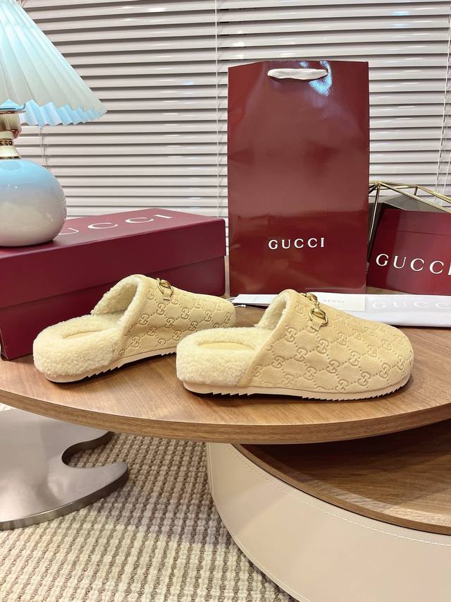 / Gucci 24Ss 秋冬新款 平底羊毛拖鞋 超舒适的 双带毛拖 简约随性 时髦有范,慵懒又不乏高级感,最舒适的拖鞋没有之一 随意上脚都好看有型,绝绝子 鞋面