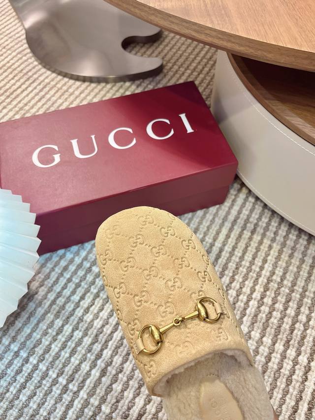 Gucci 24Ss 秋冬新款 平底羊毛拖鞋 超舒适的 双带毛拖 简约随性 时髦有范,慵懒又不乏高级感,最舒适的拖鞋没有之一 随意上脚都好看有型,绝绝子 鞋面
