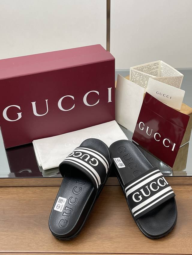 / Gucci Game系列爆款 男女情侣同款 凉鞋 夏季品牌标志字母Logo新款厚底拖鞋果冻沙滩鞋原版一比一开模品牌标志字母橡胶,独特的现代造型.条纹织带混合意大