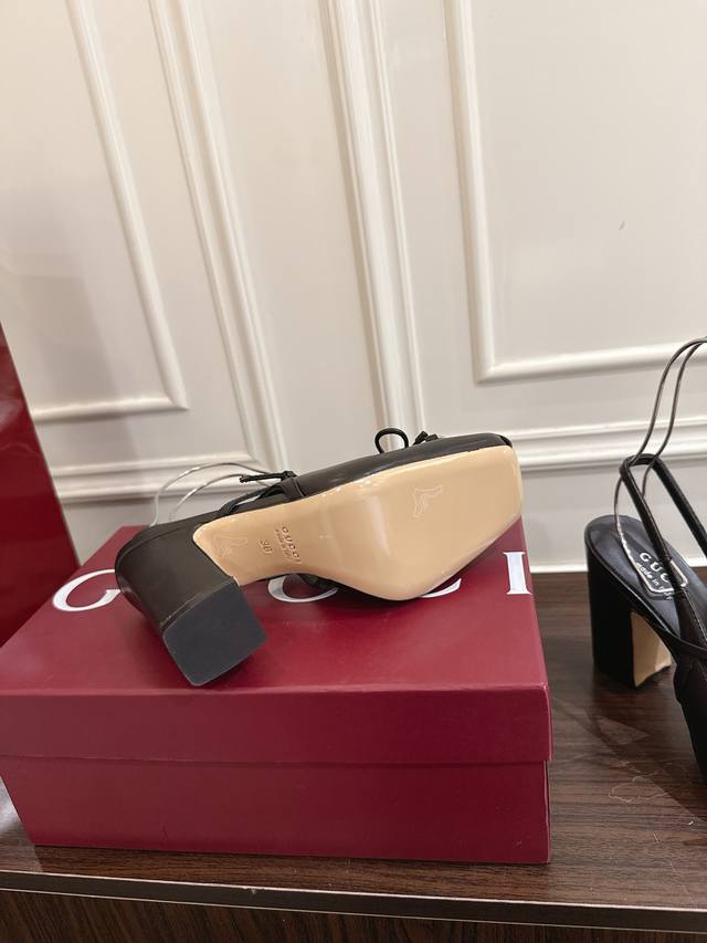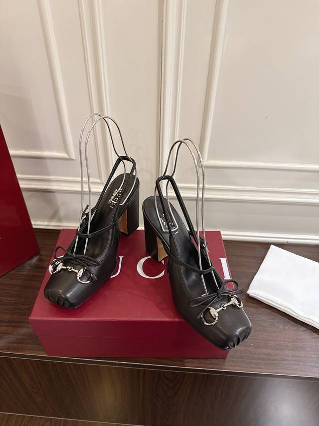 Gucci Horsebit系列女士后系带浅口鞋 2025秋冬系列,这款马衔扣后系带浅口鞋选用方形收口鞋头设计,搭配雅致的蝴蝶结细节,致敬传统芭蕾舞鞋款型。这款单品以皮革匠心打造,缀饰浅金色调配件。 Sacchetto”构造确保出色的舒适感。 跟高:9.5Cm 进口羊皮内里 码数35~42 35.40.41.42定做不退换