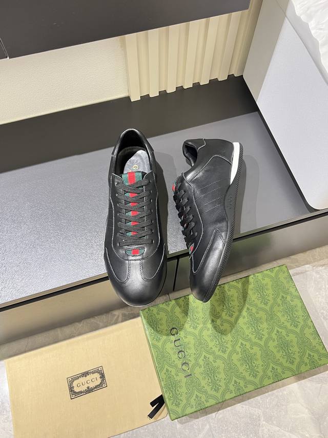 Gucci Shift系列运动鞋,主打轻盈薄底设计,麂皮+帆布+科技面料拼接,质感满分!鞋舌和后跟有红绿织带,辨识度超高。经典棕色+米白配色,复古又摩登,贝壳头鞋型显脚小,日常穿搭或裙装裤装都很出彩~鞋面织物+弹性后跟,穿脱方便,包裹感舒适,通勤休闲都能驾驭,是Demna Gvasalia入主后超火单品之一。Size:38-45! DDD
