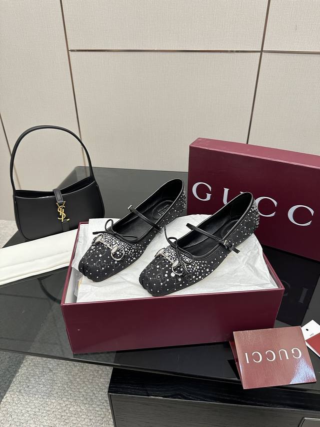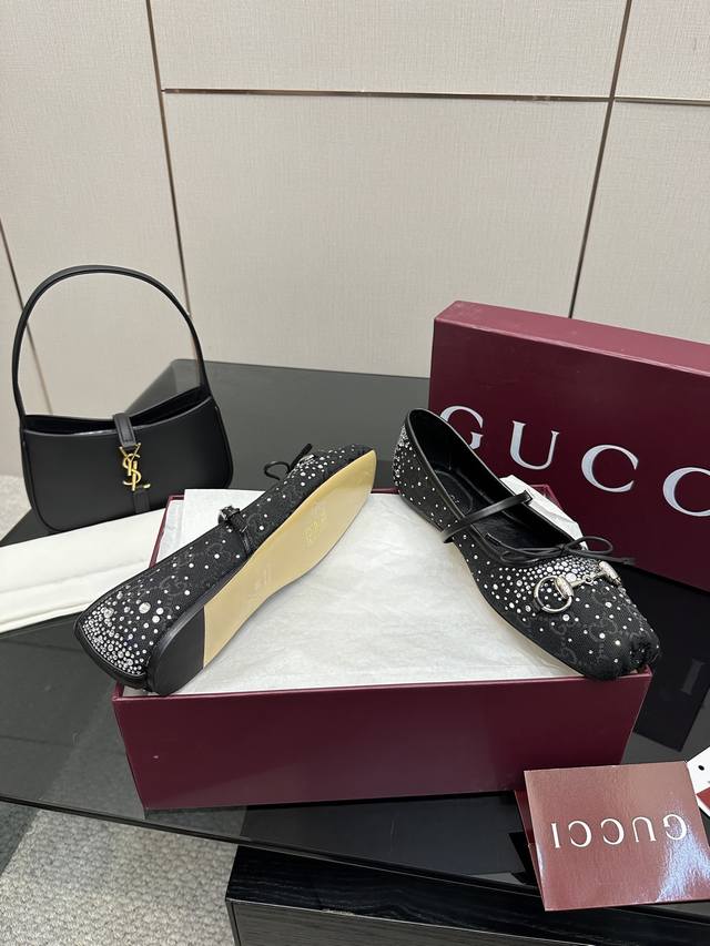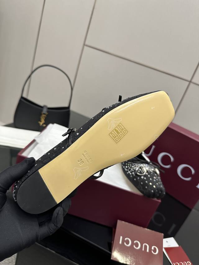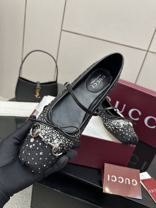 Gucci25 早春 大热马衔扣芭蕾舞鞋 走秀款新总监的色彩与实穿概念每个颜色都超级安可拉红铆钉款更是尤为出众名副其实当选今年最出众芭蕾舞鞋超有气质~百搭日常着用都是一绝的单品! 正确颜色、五金、完美一致 多对比市面上看图做货的区别哈 鞋面:布面烫钻 内里:进口绵羊皮 鞋底:进口真皮大底 厚度:平底 码数:35-39 40.41.42定做 全套包装