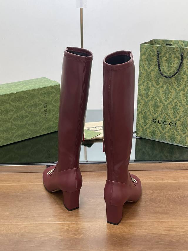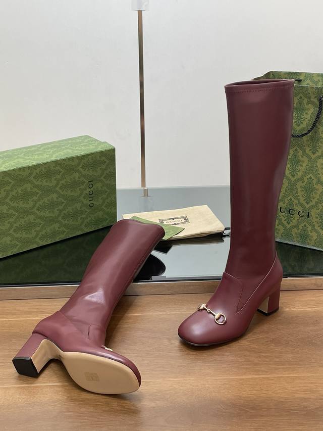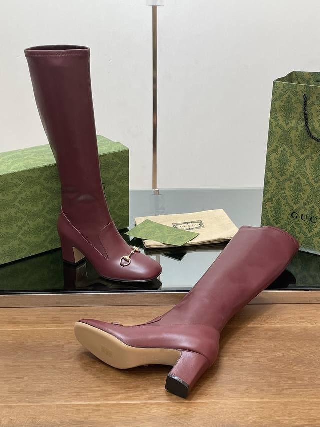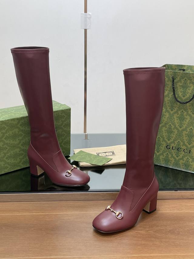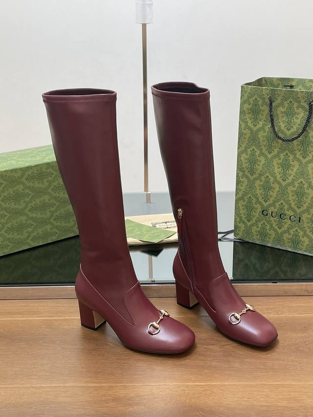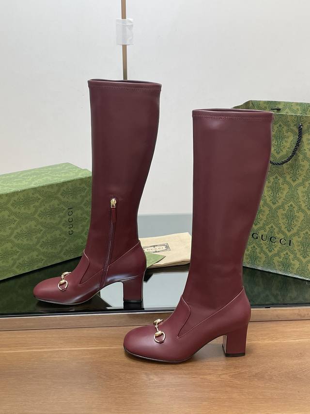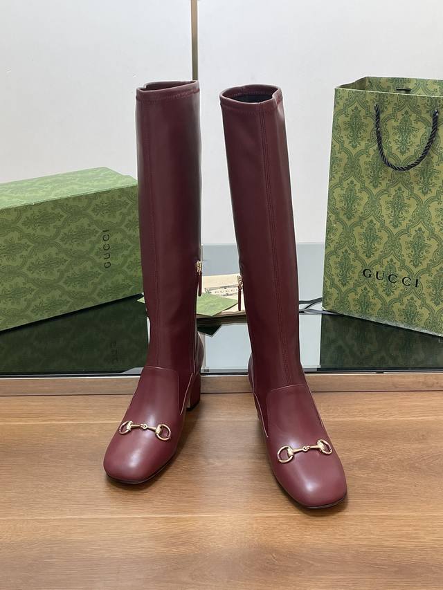 Guccl高端精品,古奇早秋新款马衔扣弹力高筒靴长靴及膝 冲量实价 经典粗跟方头踝靴原汁原味原单品质每个细节皆经过精心细致打造,可与Zg对比如一,无二品质! 面料:原版定制进口小牛+弹力古软羊皮 东莞大厂开模五金马衔扣 内里/垫脚:高端定制羊皮里 跟高:6.5Cm 大底:意大利真皮底 尺码:35-42 40 41 42定做,不退换 全套原板高端包装! 这款马靴采用皮革制作,巧妙运用方形鞋头和立体方跟等设计元素演绎时尚复古风范。拉长细腿收腿瘦腿典藏的马衔扣细节令人联想起品牌的马术本源。 女款 侧边拉链开合