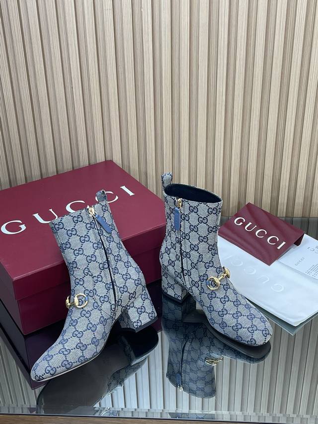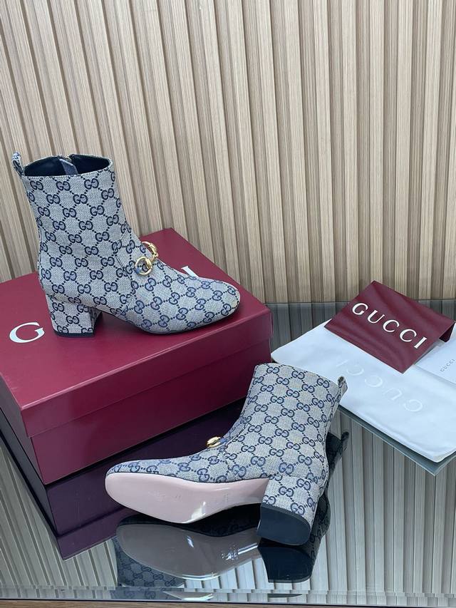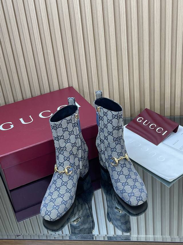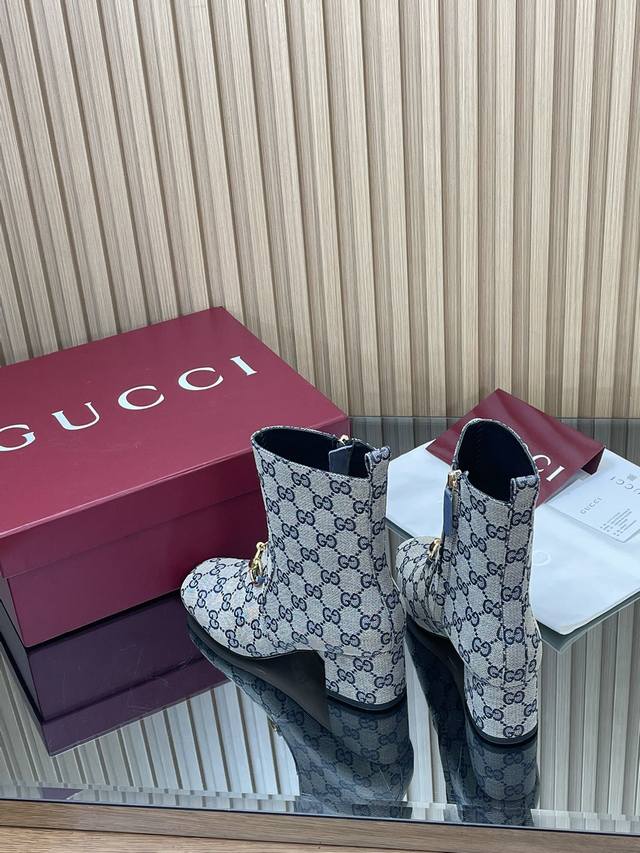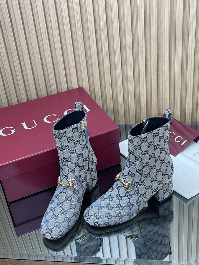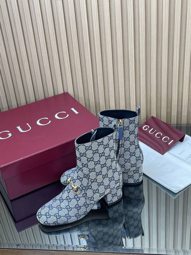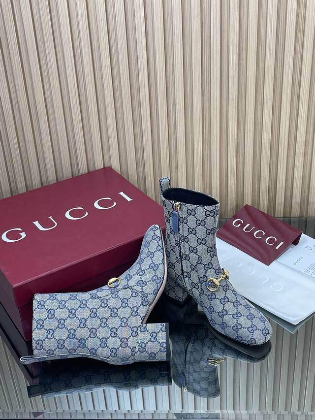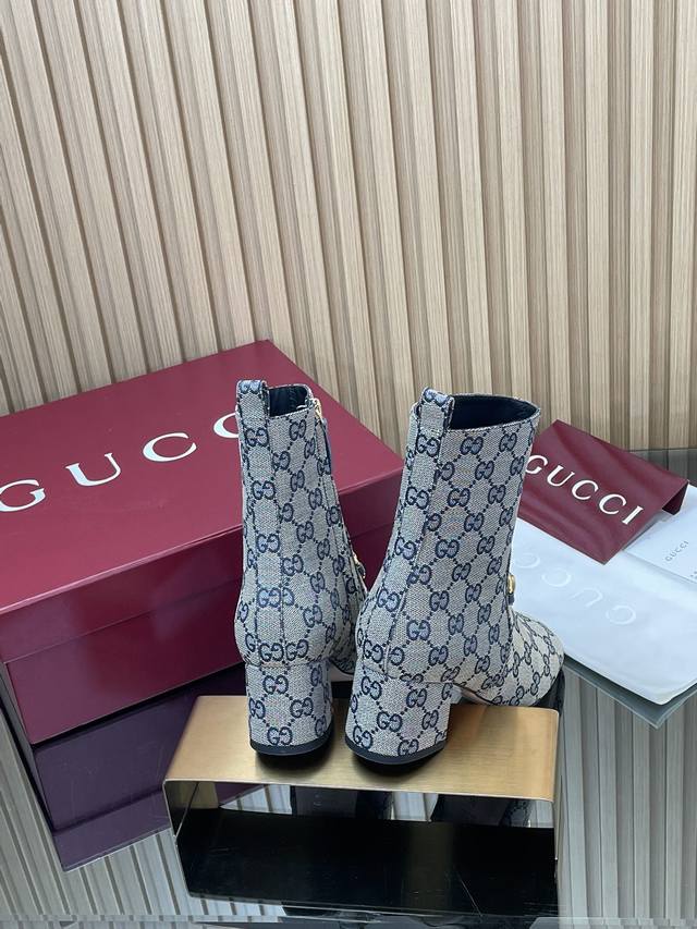 Guccl高端精品,2025古奇早秋新款马衔扣G G老花布踝靴 经典粗跟方头短靴原汁原味原单品质每个细节皆经过精心细致打造,可与Zg对比如一,无二品质! 面料:原版定制进口G G老花布 东莞开模马衔扣 内里/垫脚:高端定制羊皮里 跟高:5.5Cm 大底:意大利真皮底 尺码:35-42 40 41 42定做,不退换 全套原板高端包装! 这款马靴采用G G帆布 皮革制作,巧妙运用方形鞋头和立体方跟等设计元素演绎时尚复古风范。典藏的马衔扣细节令人联想起品牌的马术本源。 女款 侧边拉链开合 马衔扣细节.立体方跟