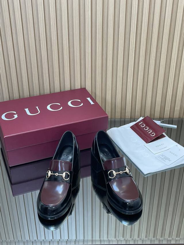 Guccl高端精品,2025早秋新款 中粗跟马衔扣中性风单鞋拼接撞色乐福鞋工装鞋原汁原味原单品质每个细节皆经过精心细致打造,可与Zg对比如一,无二品质! 面料:原版定制进口开边珠 东莞大厂开模五金马衔扣 内里/垫脚:高端定制牛皮里 跟高:5.5Cm 大底:意大利真皮底 尺码:35-41 40 41 42定做,不退换 全套原板高端安可拉酒红包装! 作为对品牌马术本源的致敬,马衔扣历经时间洗礼后,将厚重历史底蕴与现代时尚型格融为一体。这款女士中粗跟乐福工作鞋采用光滑亮面进口开边珠拼色拼接匠心打造,更显干练帅气