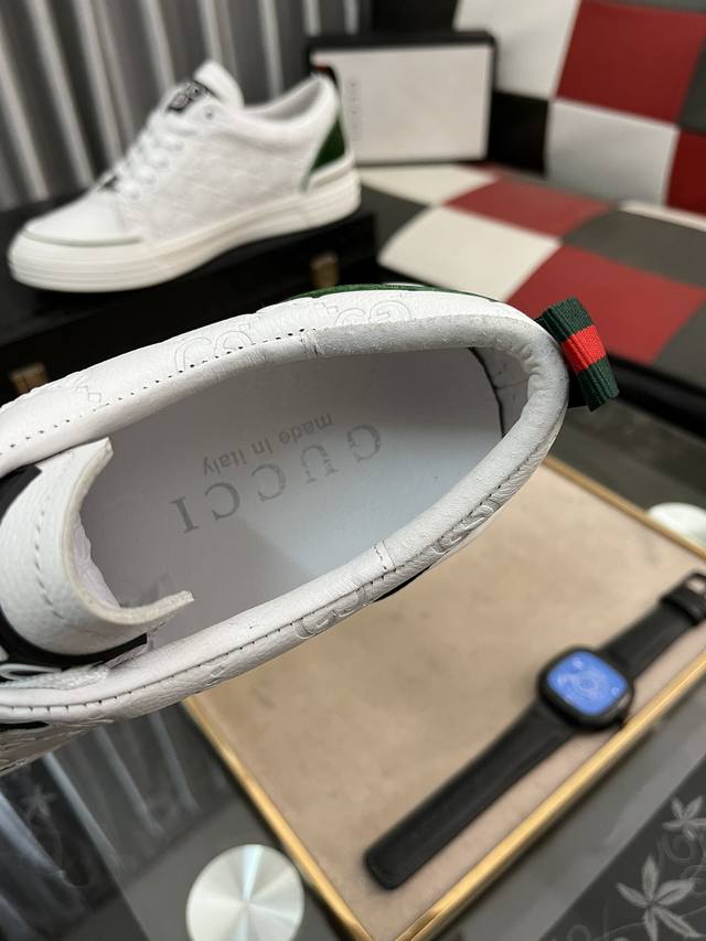 出厂价Pp: Gucci 古奇官网男士休闲鞋同步款,鞋面选用牛皮配进口新品牌元素 古奇,彰显不俗的气息,设计简约套脚款型...