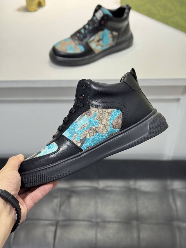 出厂价p 实价 古奇G 家高帮经典休闲时尚男鞋爆款版型简洁大气,潮男专属.独有的官网最新品牌元素古奇原版装饰,时尚又大方,面料原版柔软小牛皮制作 舒适的柔软内里 耐磨橡胶大底_弹力十足,专柜经典款实物拍摄颜色:多色可选 Ddd Size:38-44 45定制 DDD