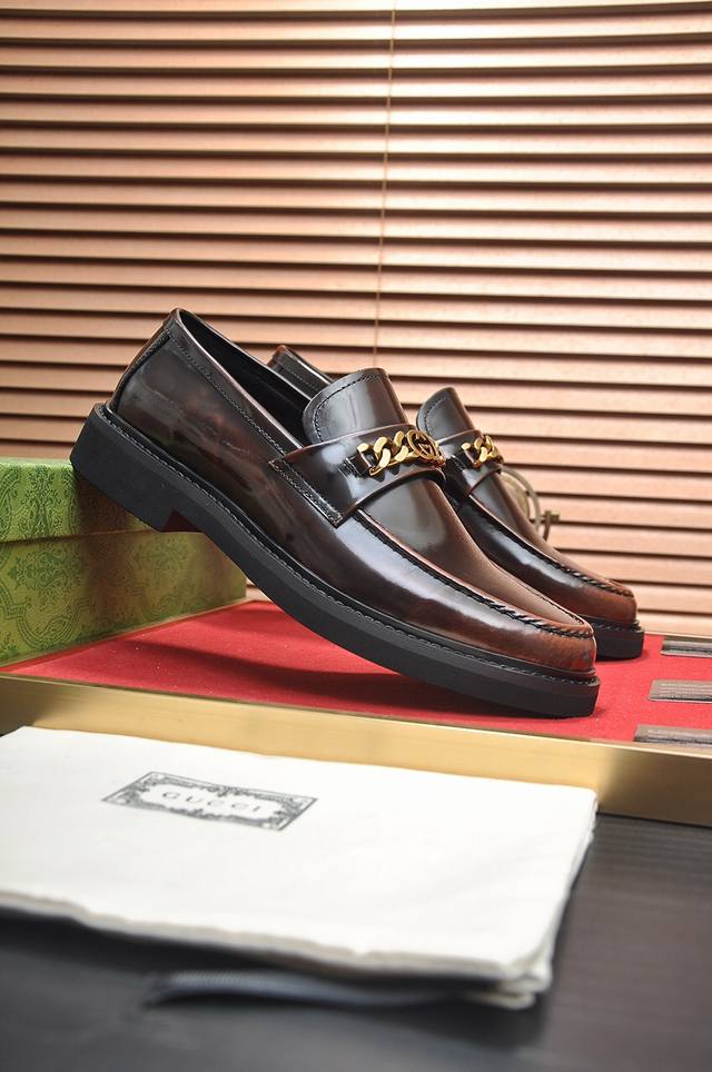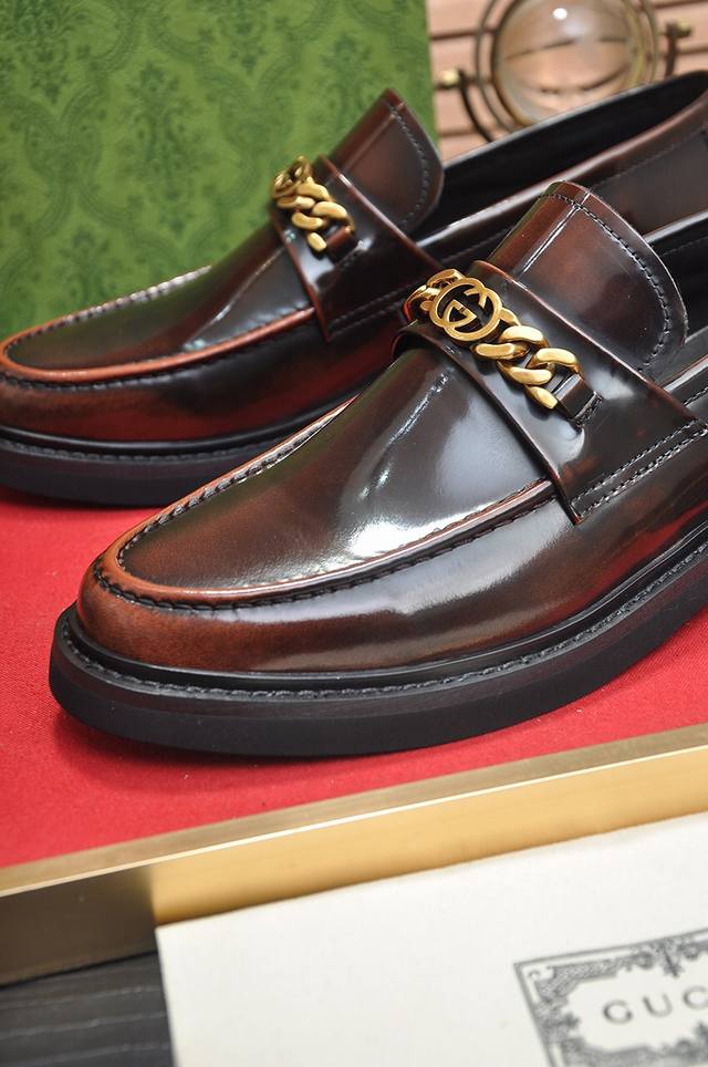 出厂价P 意大利顶级奢侈男鞋巨头 Gucci 古奇 全牛皮内里 新款报到原汁原味的欧式风格 赏心悦目为了让鞋子更加耐用不变形制作继续沿用传统做法 但仍然不乏创新皮质上选择原版羊皮 流畅自然 并格外光亮进口牛皮制作而成 土豪的第一选择 38-45 45定做