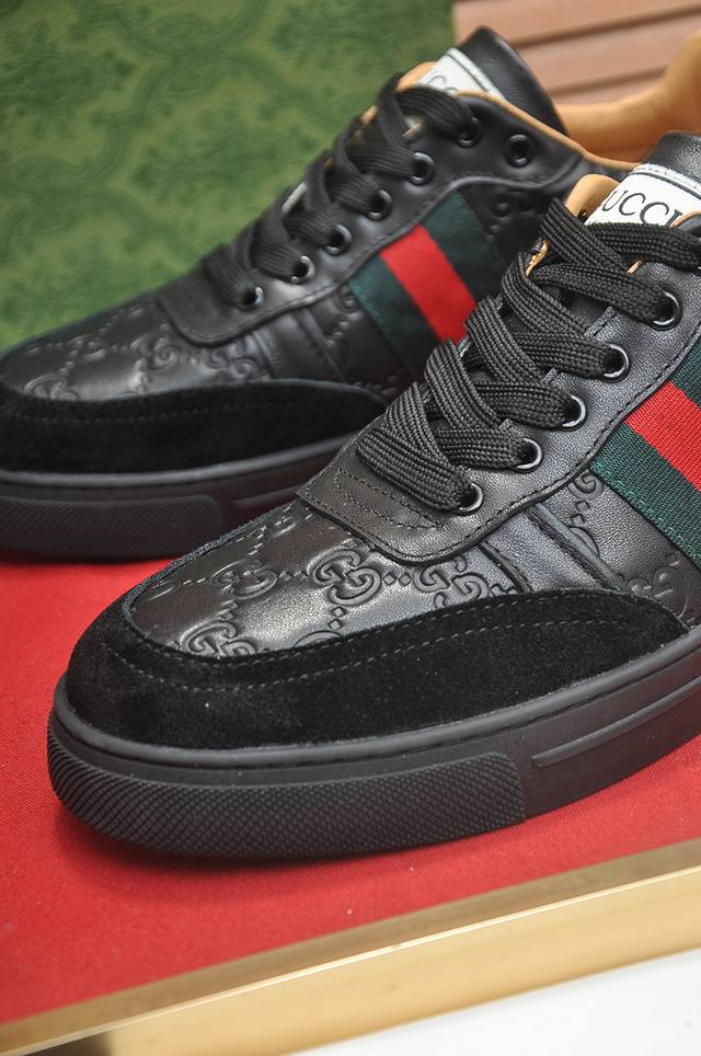 出厂价P Gucci 古奇 官网1:1运动男鞋火爆上市,采用原版丝绸牛皮+头层羊皮内里,再加官网原版1:1舒适大底。时尚百搭,着脚超舒适、透气!黑2色可选,标准鞋码38 45 45定做不退换