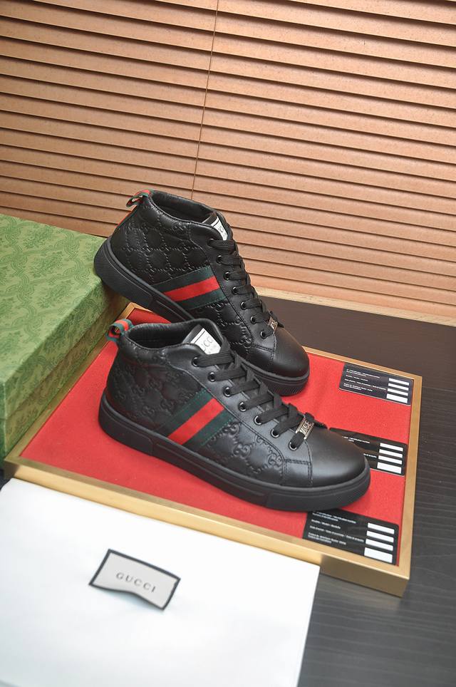 / 出厂价P Gucci 古奇 官网1:1运动男鞋火爆上市,采用原版丝绸牛皮+头层羊皮内里,再加官网原版1:1舒适大底。时尚百搭,着脚超舒适、透气!黑2色可选,标准