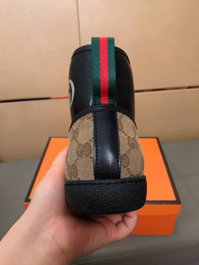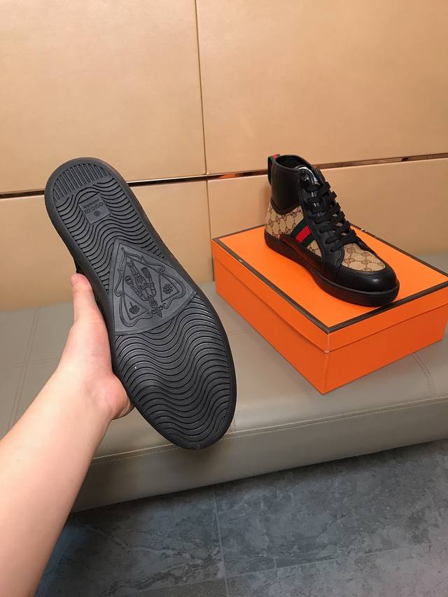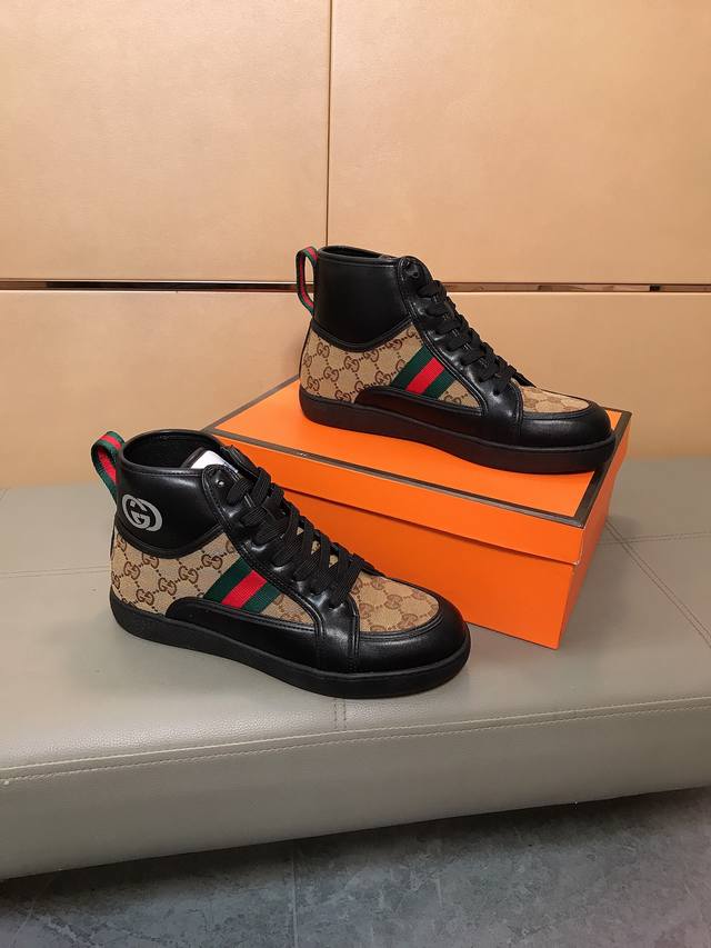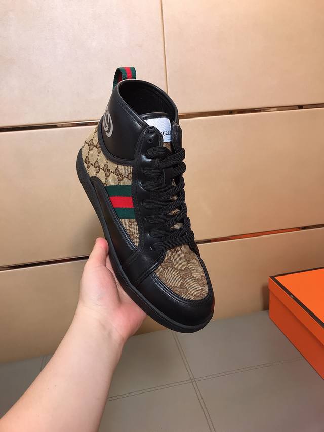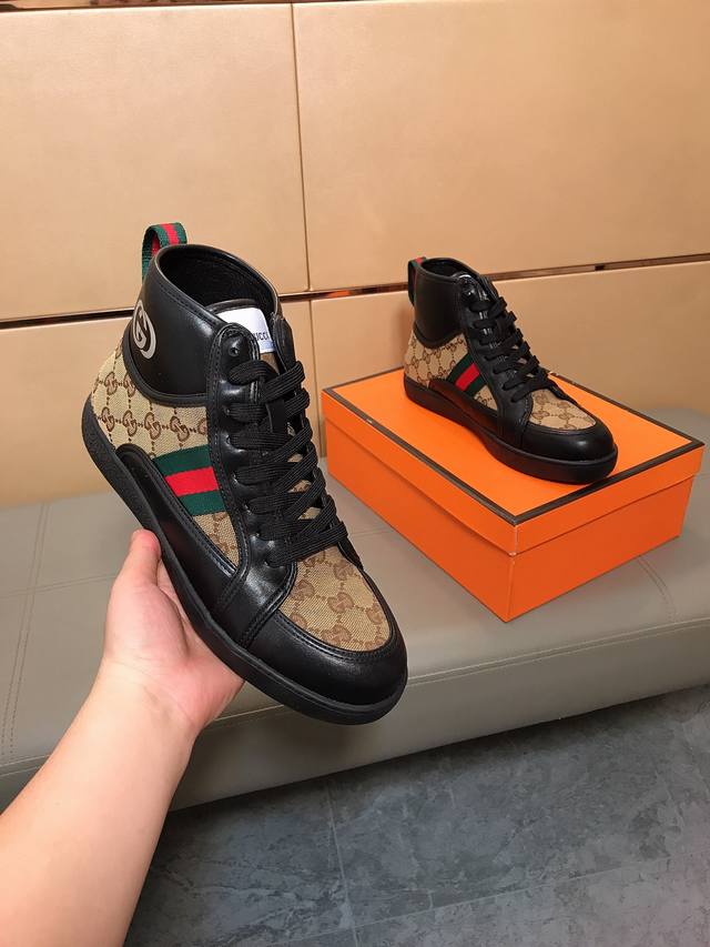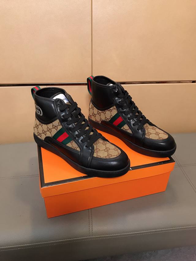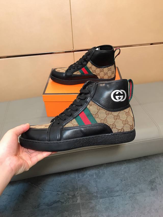 出厂价p Gucci 古奇 新款高帮男鞋休闲鞋绝对火爆潮男的极致搭配单品!超质感魅力挡不住,主推款,花皮色彩亮丽!鞋面选用优质牛皮+品牌印花面料,羊皮内里,垫脚, 耐磨橡胶底,高贵典雅!舒适度爆棚想怎么帅就怎么帅 38-44码! DDD