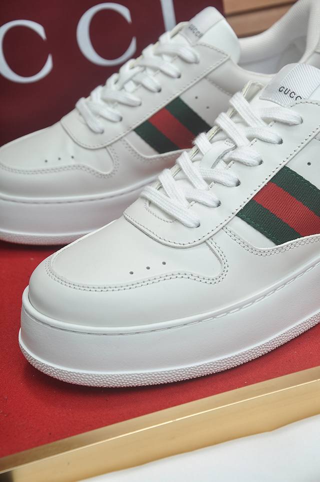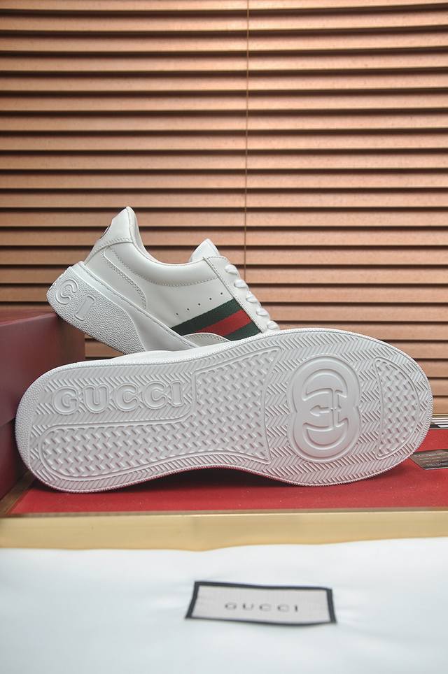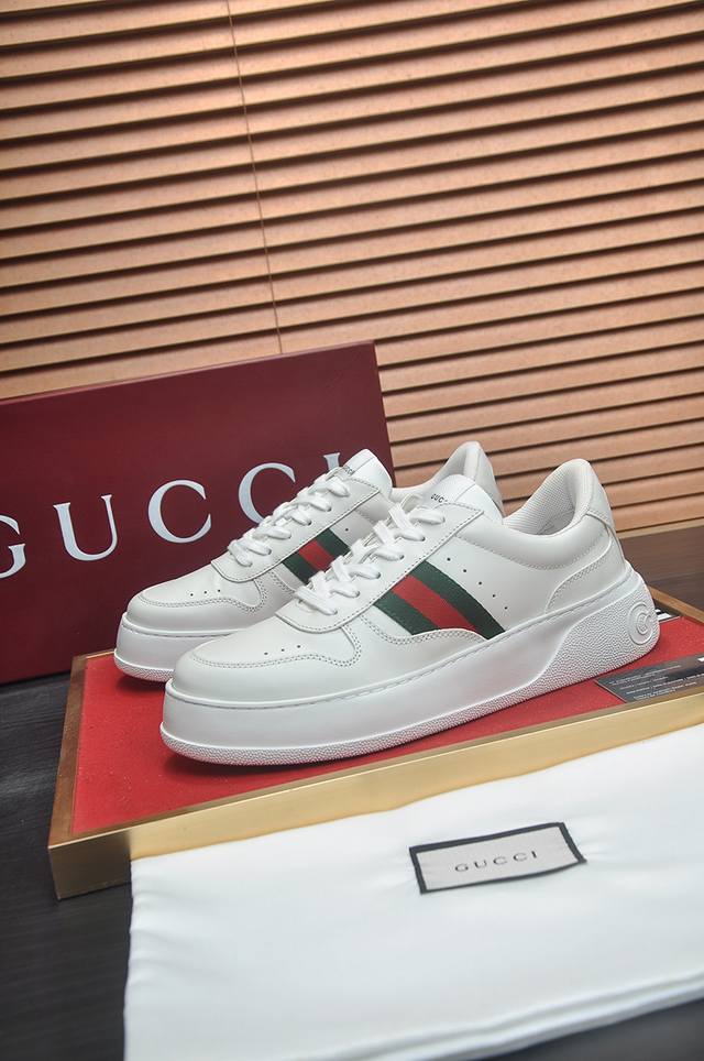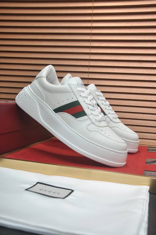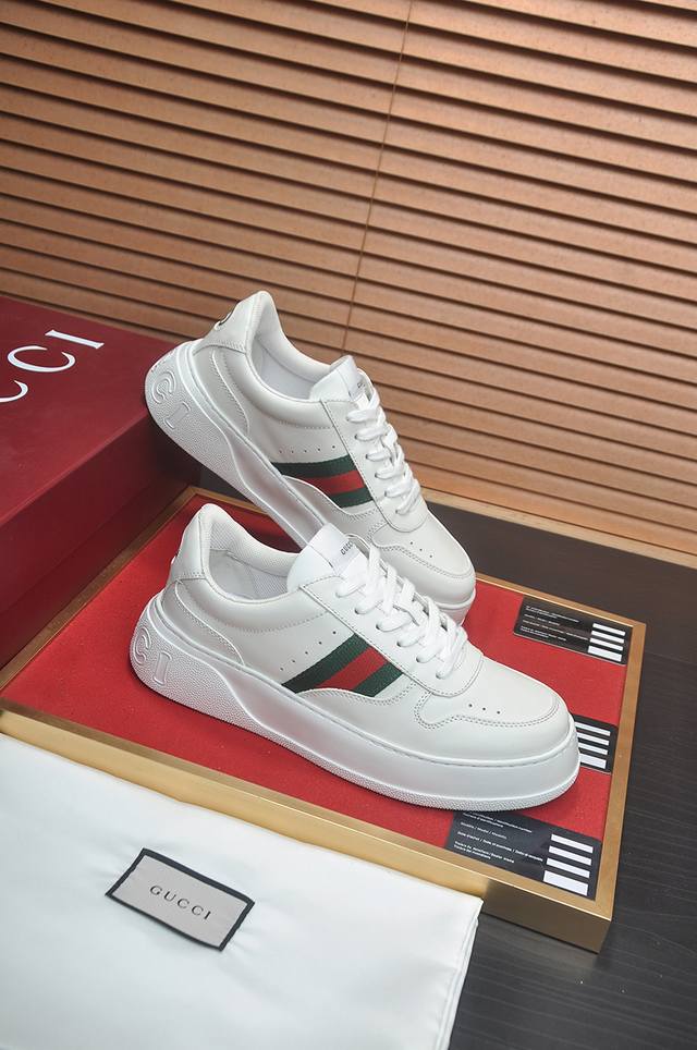 新款: 厂价 古奇Gucci* 最新爆款休闲鞋,顶端品牌奢侈~代购,顶级~质量。鞋面選用进口透气牛皮搭配布材质透气羊皮垫脚...