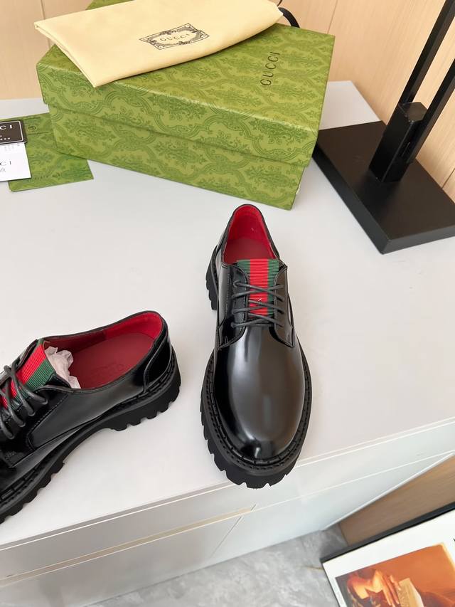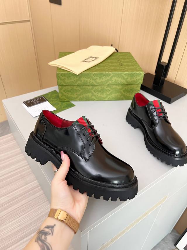 / 出厂价pp: 元专柜最新古琦 Gucci 系带乐福鞋 主要搭配各种风格的潮衣都能凸显其时尚 推荐必入的一款 面料:牛皮 、开边珠 内里 垫脚:红色牛里 颜色:黑