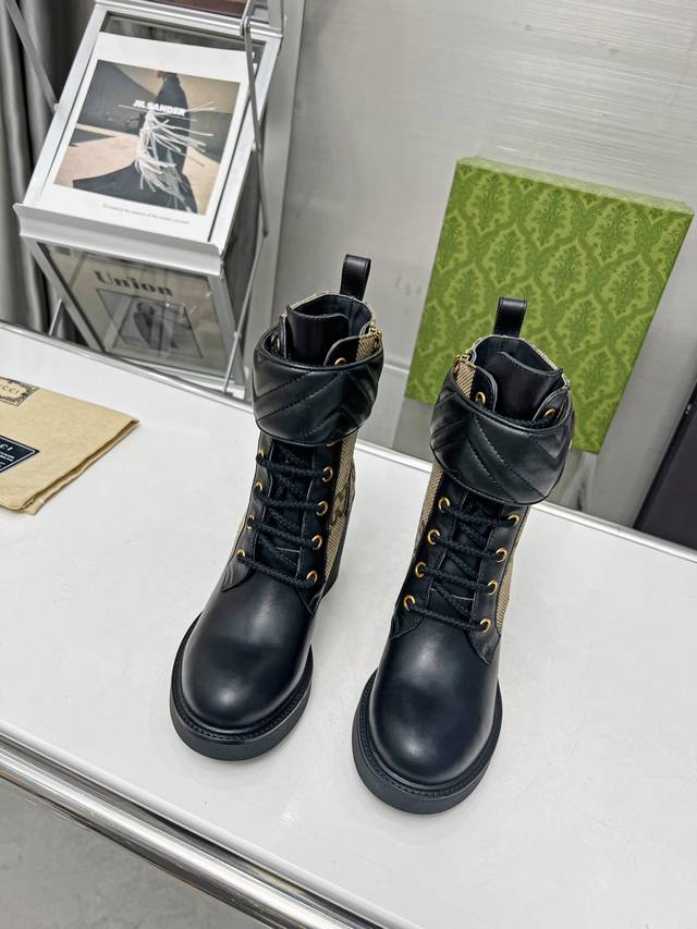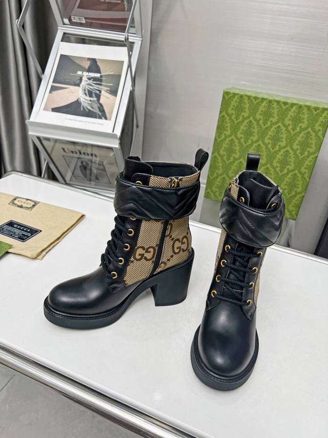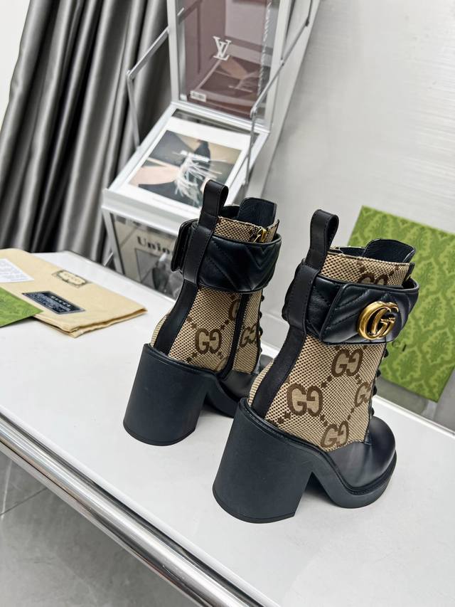 / 出厂价pp: 元 秋冬Gucci双G踝靴原版开模 全油边和电绣魔术带,卡其色Gg帆布标识元素搭配、高级感十足 侧拉链穿脱超方便 面料:牛皮 内里 垫脚:高端牛里