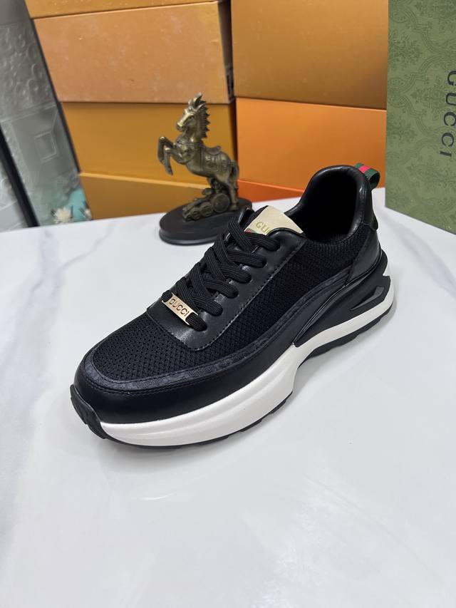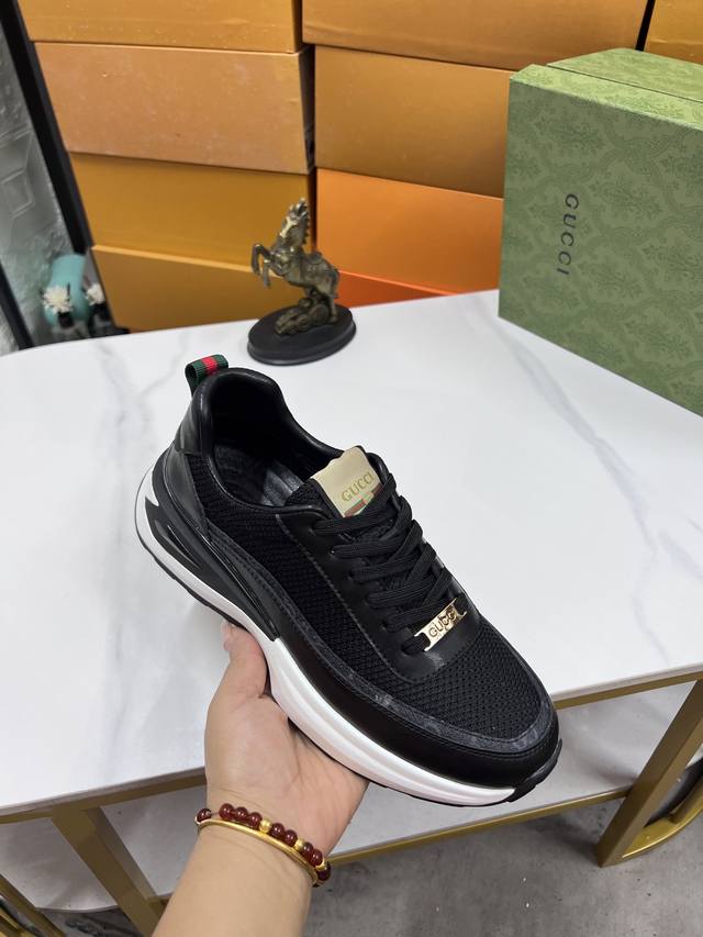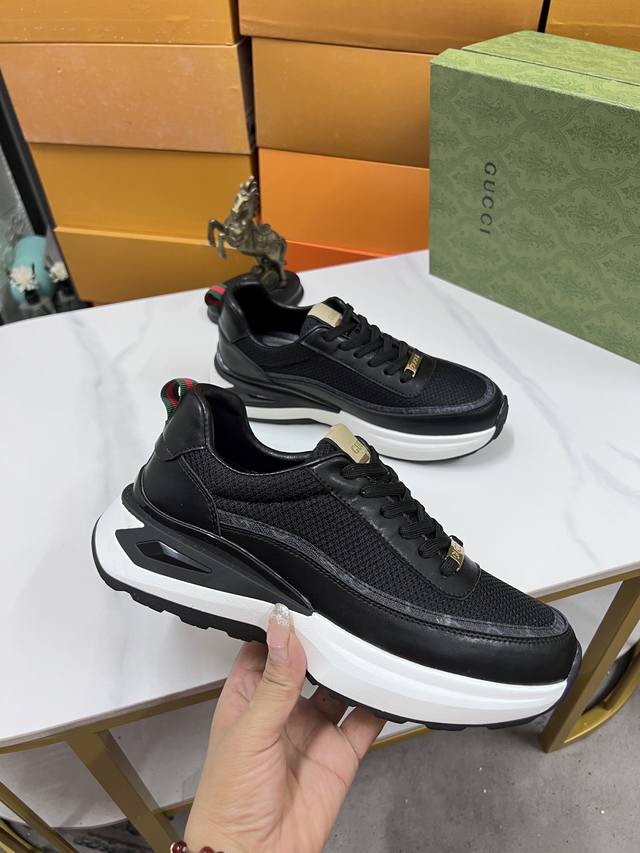 出厂价Pp: 古奇 休闲板鞋 官网同步新款 进口打蜡牛皮真皮内里制作原版中底 私家定制滴胶发泡大底大底组合 38-44R