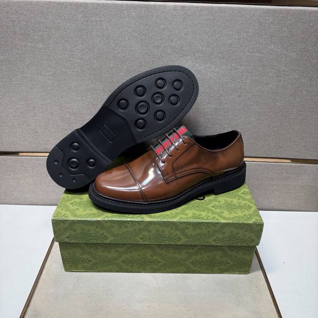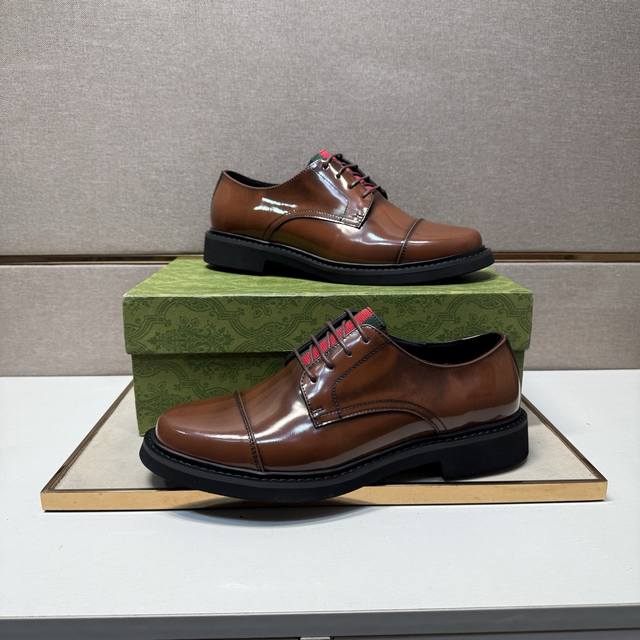 / 出厂价pp 古驰~ 男士休闲正装皮鞋 2025Z柜同步发售 码数:38-44 # 2个颜色鞋面选用多材质拼接牛皮内里,舒适透气,鞋底:原版舒适耐磨大底,实物拍摄