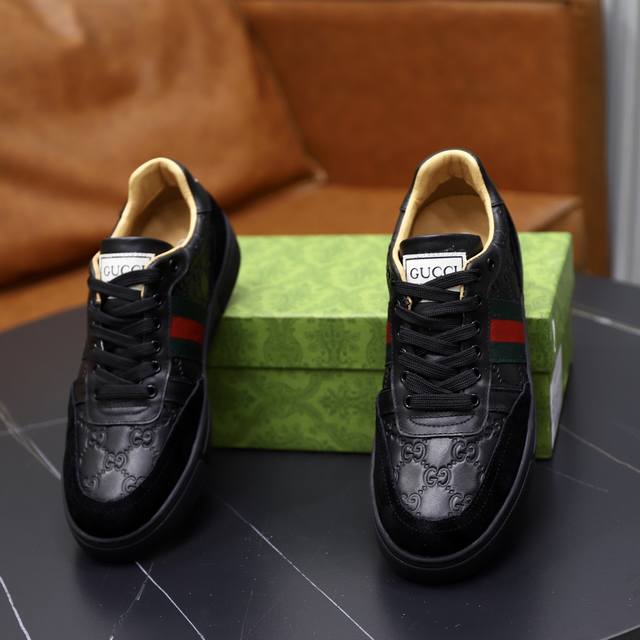 / 出厂价Pp: 品牌:古奇Gucci 标准码:38-44 45订做 等级:官网同款 材料:原厂皮料拼接 舒适透气羊皮内里 原厂耐磨大底 款式类别:男士时尚休闲鞋