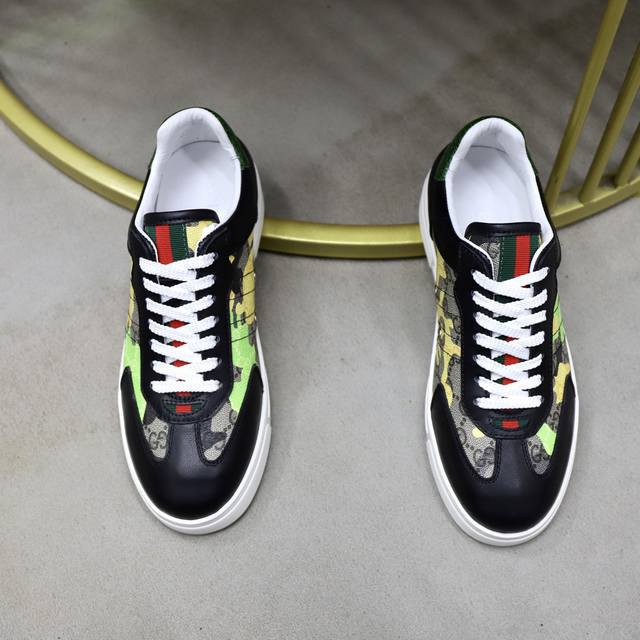 / 出厂价pp: 品牌:古奇Gucci 标准码:38-44 45订做 等级:官网同款 材料:原厂皮料拼接 舒适透气羊皮内里 原厂耐磨大底 款式类别:男士时尚休闲鞋