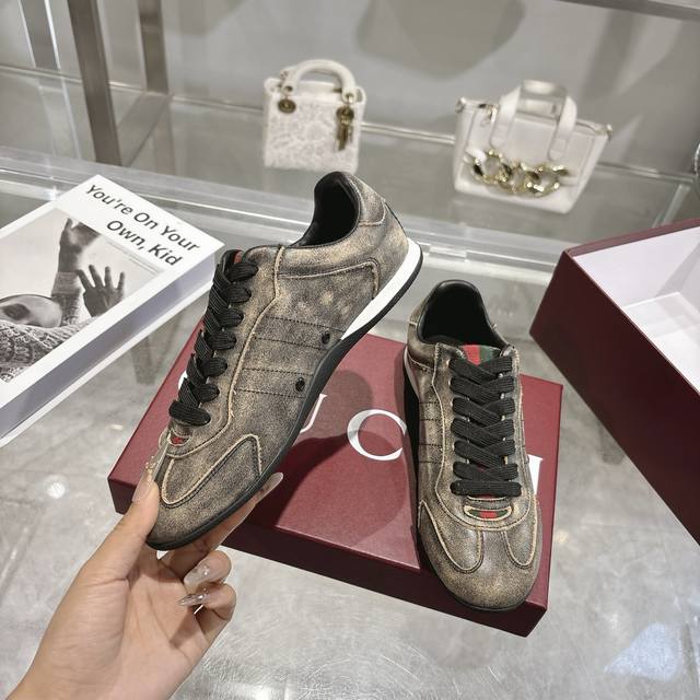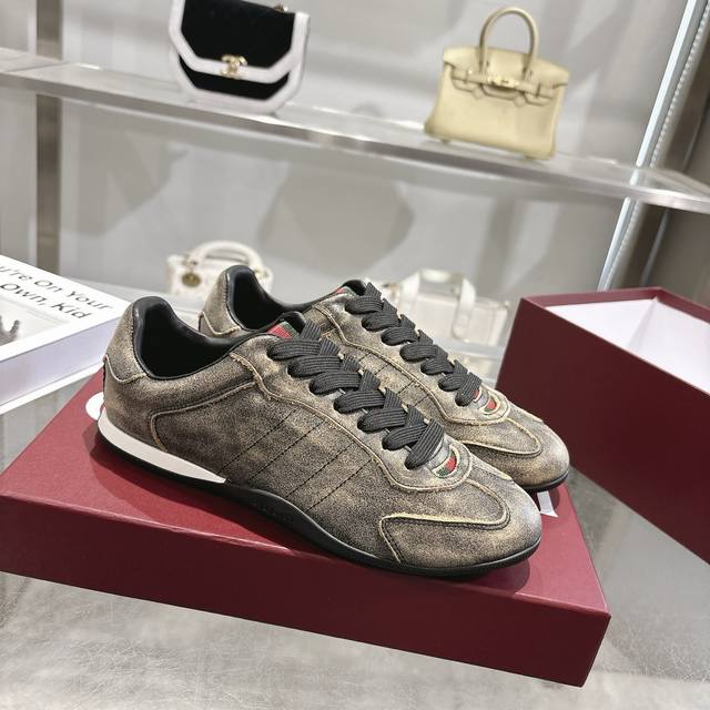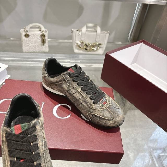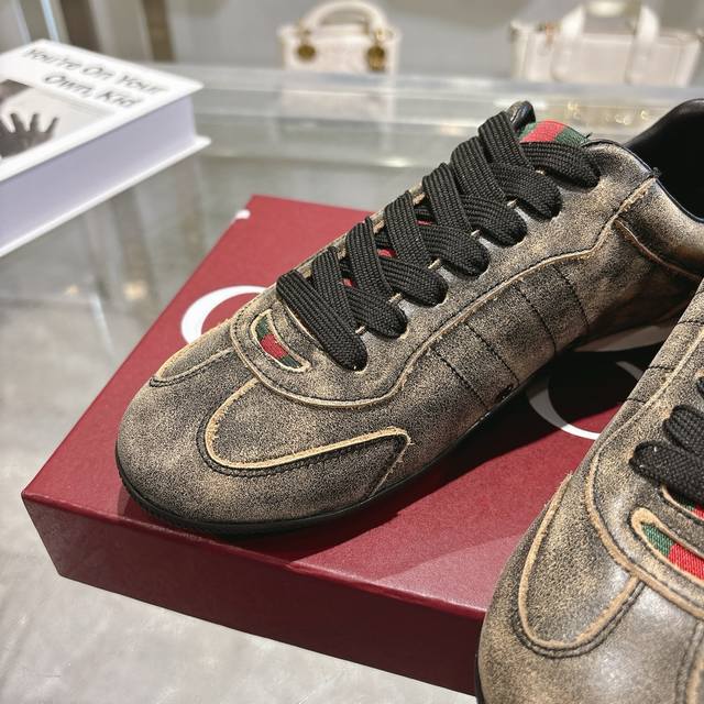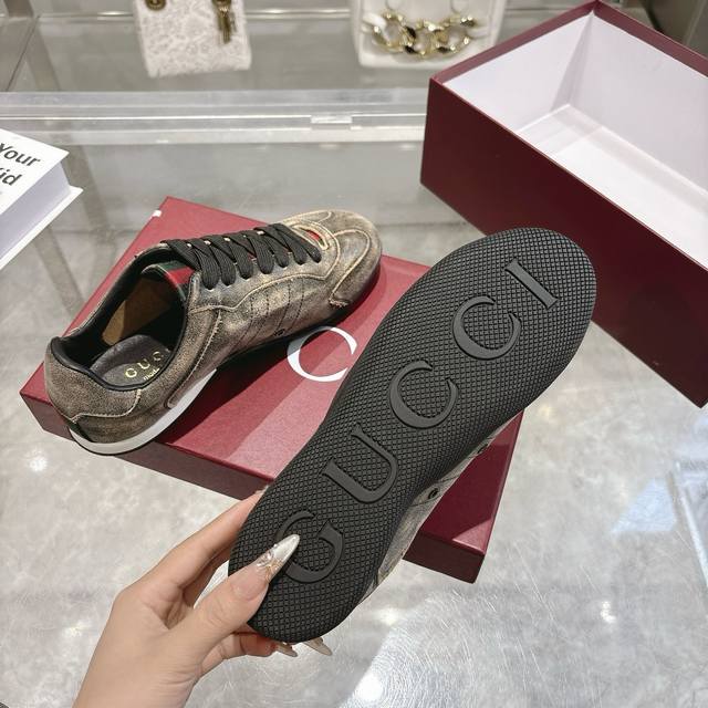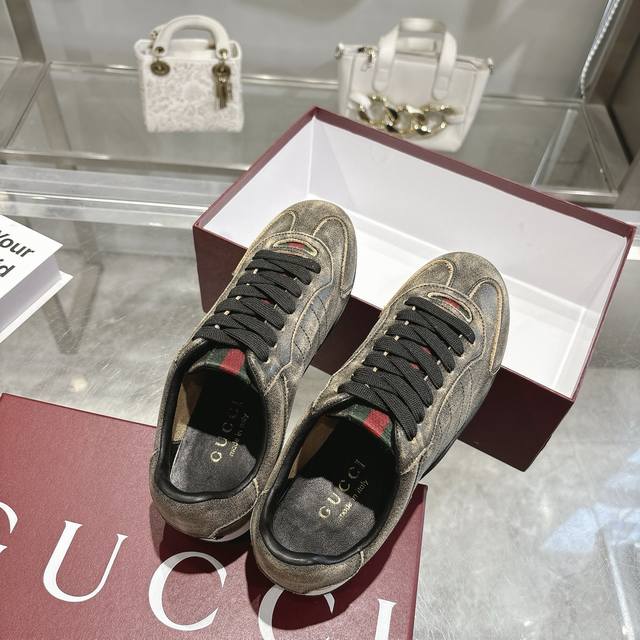 出厂 顶级版本 Gucci家古驰小脏鞋全系列升级 长期做货 Gg古奇系列做旧休闲小脏鞋走秀款 Zp开发纯原版本 金属双G水晶圆柱形标 Gucc原版纹织带 鞋面擦