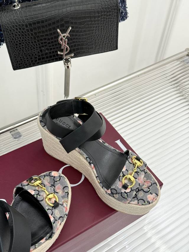 厂价 Gucci 古驰经典马衔扣坡跟凉鞋 当G家标志性马衔扣 邂逅时髦坡跟 一场华丽与舒适兼得的时尚盛宴就此开启。 这双凉鞋 是经典与现代的激情碰撞 每一步都是意式风尚的自信表达。 巧妙拉长腿部线条 提升整体气质 让你在行走间轻松展现优雅姿态 厚底设计增加稳定性 行走更自在 不累脚。 面料采用原版定制材质 内里垫脚均为小羊皮 意大利进口真皮大底 Size:35-39 40 41 42定制