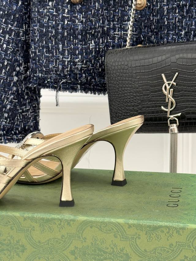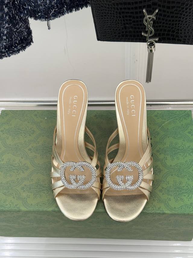 厂价 DDD Gucci 古驰25Wf早春水钻双G细带 DDD 高跟拖鞋 DDD 以经典符号与璀璨钻光重构早春格调 DDD 将意式“不经意的优雅”融入鞋履方寸 DDD 步履间尽显奢品质感与摩登张力。 DDD 鞋身核心缀立体金属双G标识 DDD 满镶细碎水钻 光线折射下闪映莹润光泽 DDD 不浮夸却自带高光辨识度 DDD 既是品牌百年Dna的当代转译 DDD 8.5Cm细高跟挺拔有型 DDD 小个子上脚可自然拉长身形比例 DDD 百搭属性适配全场景穿搭 DDD 搭配真丝吊带裙 是约会通勤的温柔奢雅 DDD