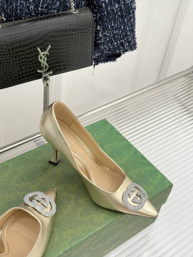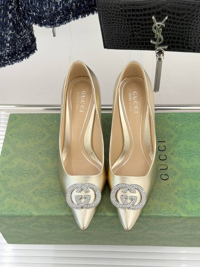 厂价 DDD Gucci 古驰26Wf早春水钻尖头 DDD 高跟鞋单鞋 DDD 溯源佛罗伦萨文艺复兴底蕴 DDD 这双高跟鞋单鞋以“回归本源 DDD 将品牌百年Dna与优雅美学融于鞋履 DDD 钻光流转间藏尽质感又显高级 DDD 完美诠释意式“漫不经心的优雅”。 DDD 双G标志在水钻的镶嵌下格外夺目 DDD 为鞋履增添了一抹灵动的光彩 DDD 彰显出Gucci独特的品牌格调 DDD 无论是搭配简约的连衣裙 DDD 还是干练的西装套装 DDD 都能瞬间提升您的时尚感与高级感 DDD 让你成为众人瞩目的焦点