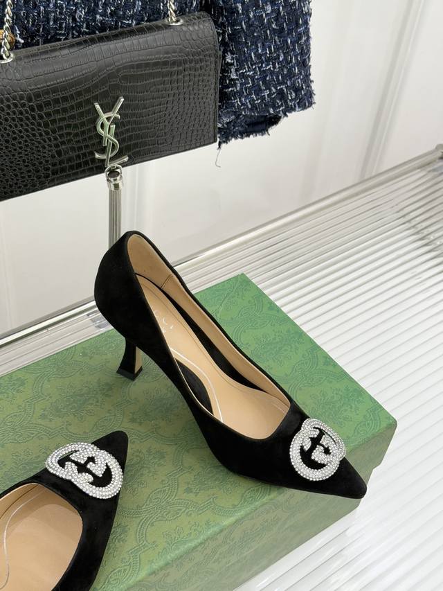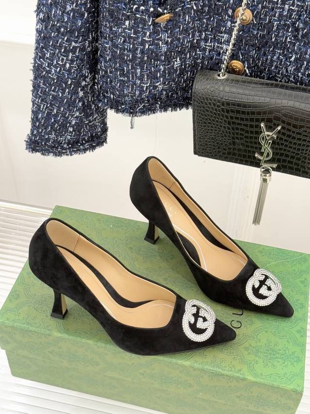 厂价 DDD Gucci 古驰26Wf早春水钻尖头 DDD 高跟鞋单鞋 DDD 溯源佛罗伦萨文艺复兴底蕴 DDD 这双高跟鞋单鞋以“回归本源 DDD 将品牌百年Dna与优雅美学融于鞋履 DDD 钻光流转间藏尽质感又显高级 DDD 完美诠释意式“漫不经心的优雅”。 DDD 双G标志在水钻的镶嵌下格外夺目 DDD 为鞋履增添了一抹灵动的光彩 DDD 彰显出Gucci独特的品牌格调 DDD 无论是搭配简约的连衣裙 DDD 还是干练的西装套装 DDD 都能瞬间提升您的时尚感与高级感 DDD 让你成为众人瞩目的焦点